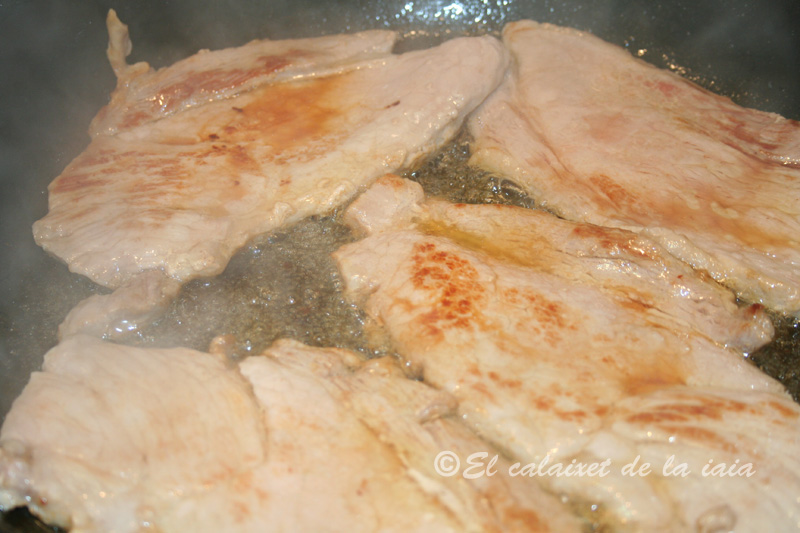 Freímos el magro en la sartén con un poco de aceite, solo hasta que tome color.