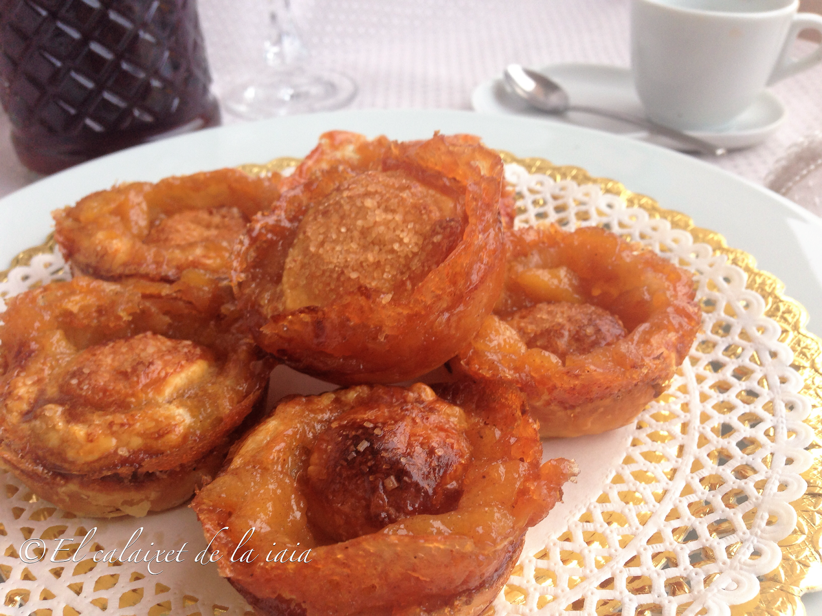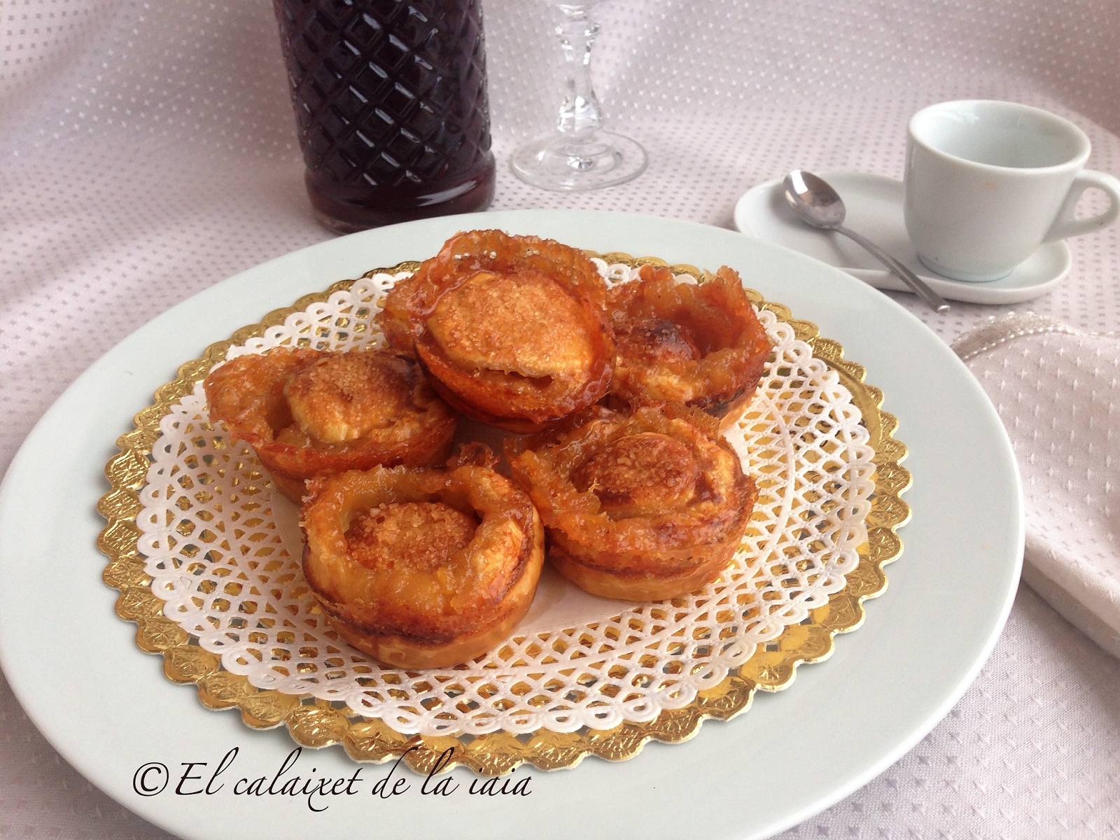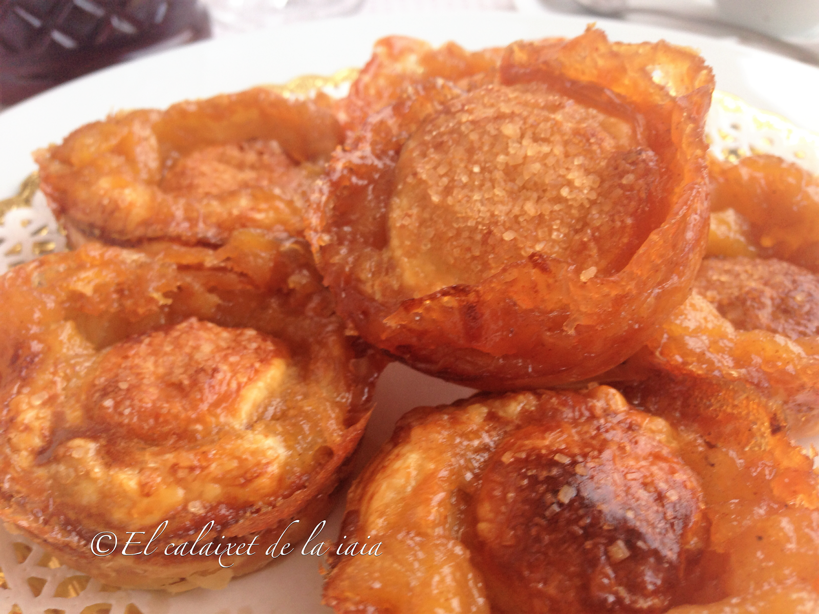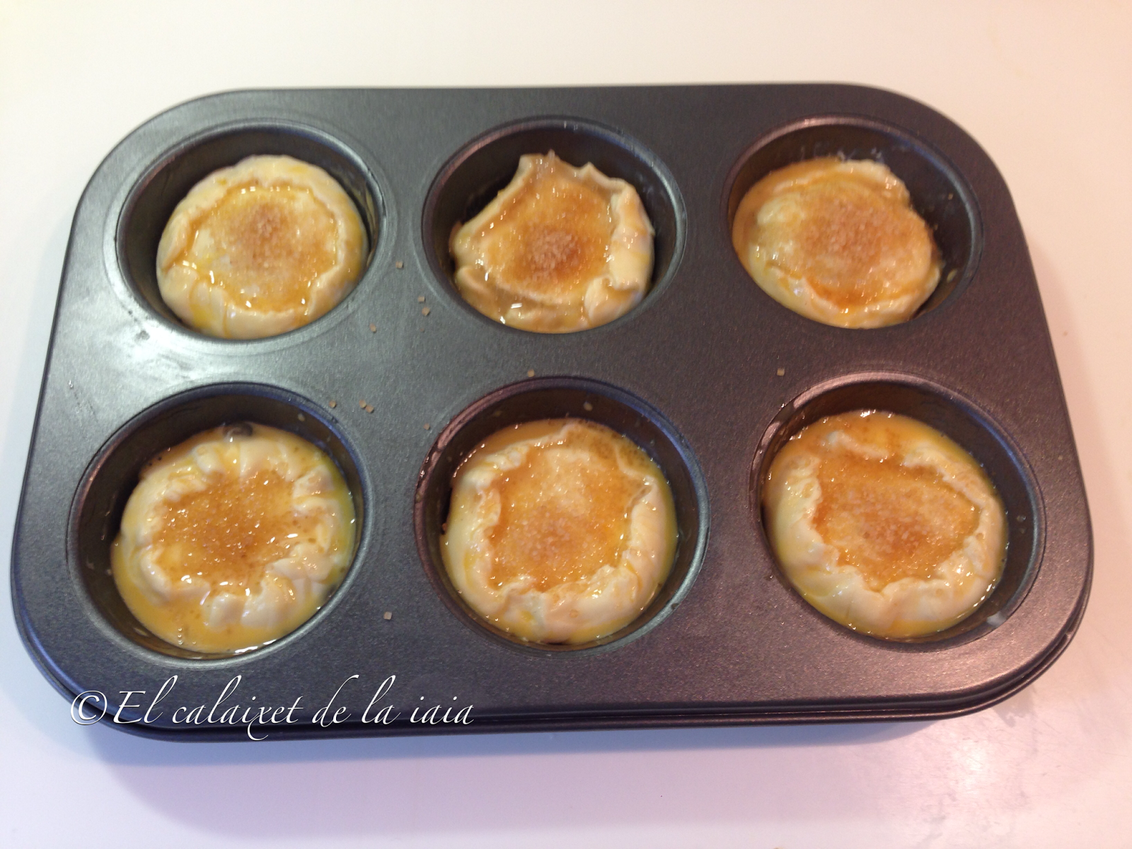 engrasaremos con un poco de mantequilla un molde de magdalenas, y pondremos los círculos de masa de hojaldre, rellenaremos con la compota una vez fría pero no demasiado