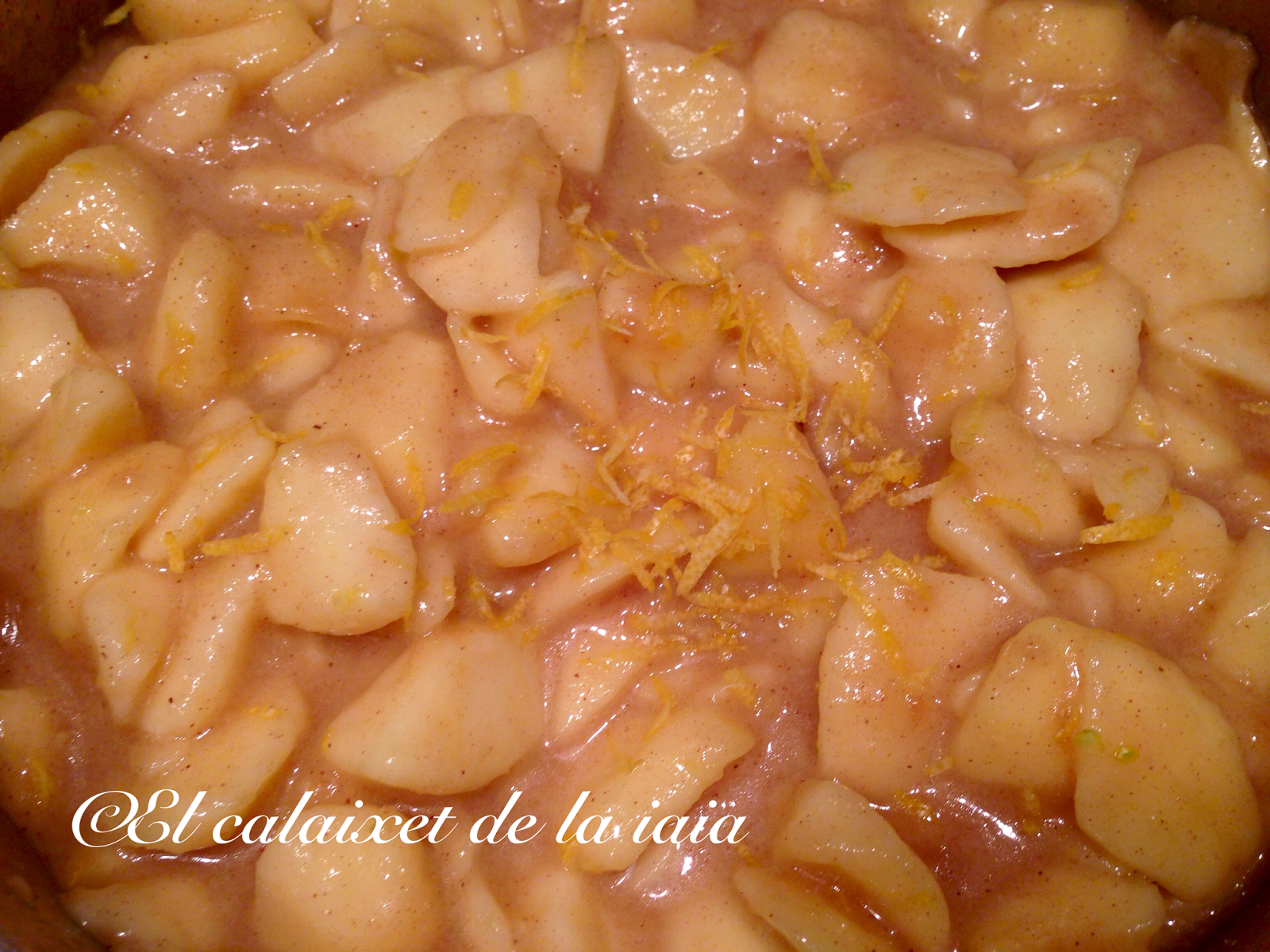 añadiendo la harina y las manzanas en trozos, la ralladura de medio