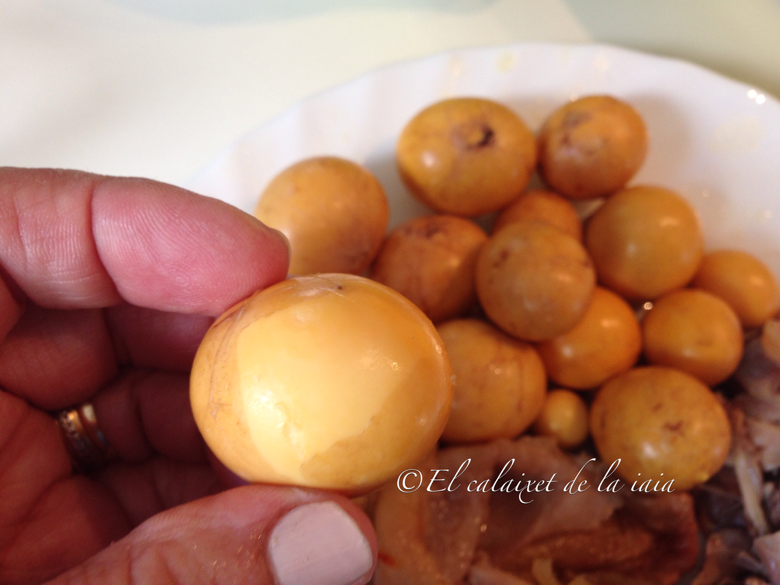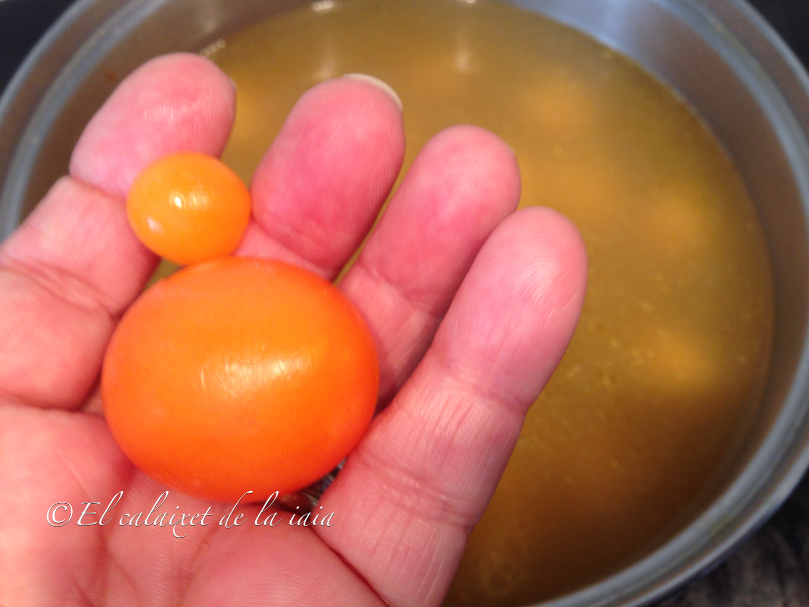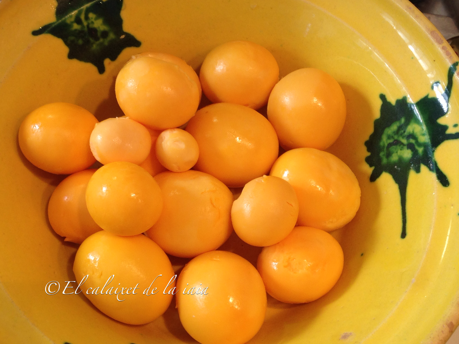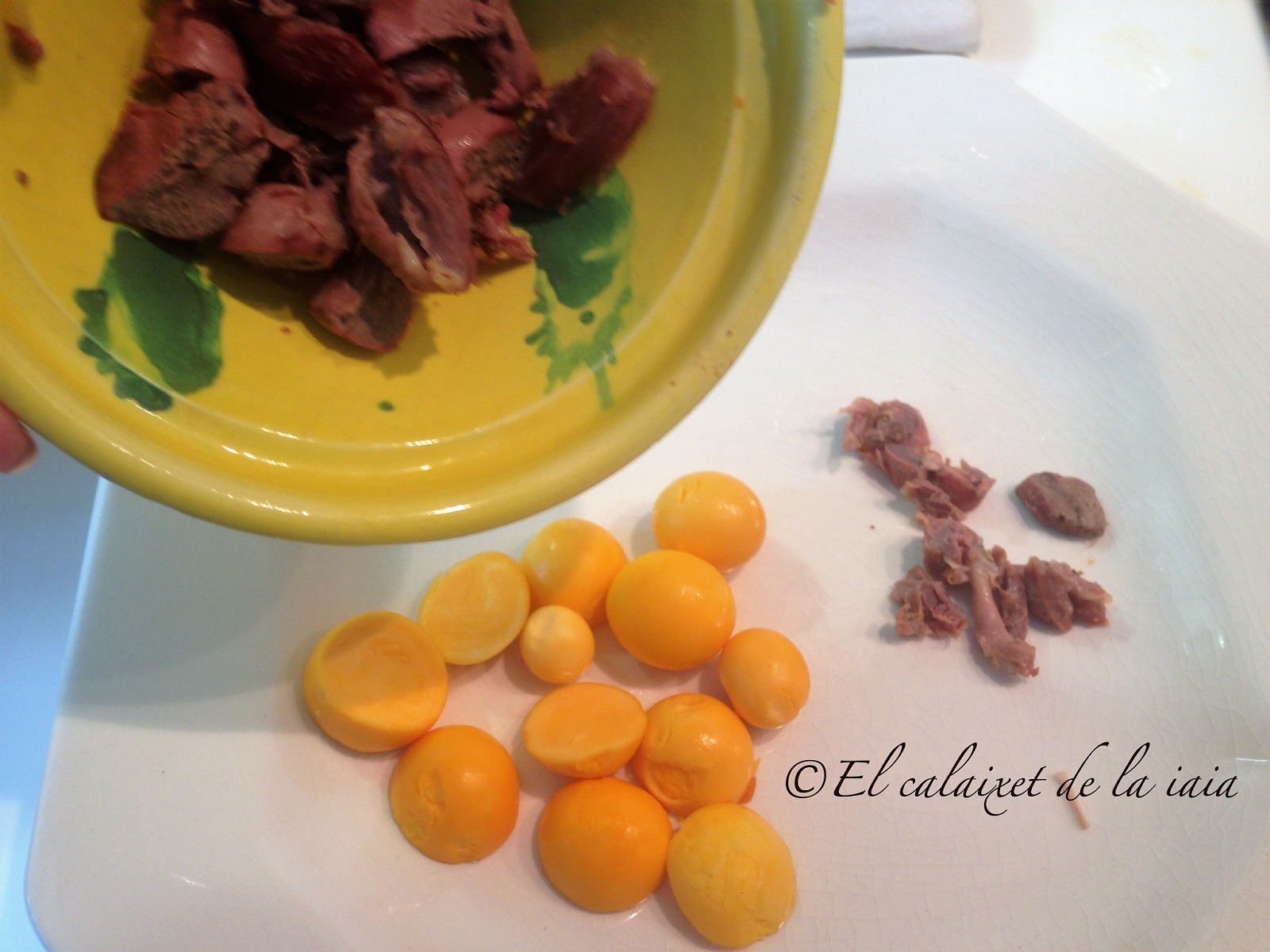 gallina, y tanto si es fecundado, como si no, al final, forma el huevo. Al abrir una gallina, podemos encontrar éstos huevos que se hubieran comenzado a formar pronto. Estas yemas las podéis encontrar frescas en las carnicerías, pollerías, en los mercados y muchos grandes supermercados, incluso las he visto congeladas. En caso de que no encontréis, podéis usar huevos de gallina camperos cocidos, aunque el sabor cambia un poco, lo importante es que no os privéis de disfrutar de esta rica comida 😉