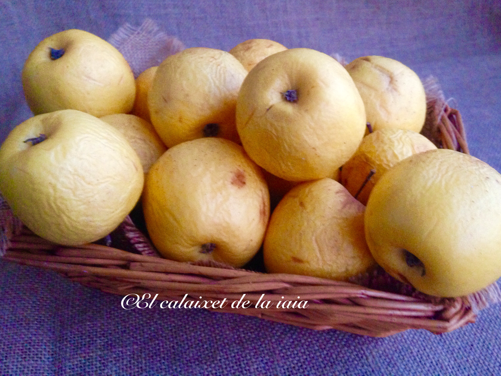 ¿Veis estas manzanas tan feitas y arrugadas? pues son absolutamente deliciosas, unas manzanas reineta de la sierra de Albarracín que aguantan en la cambra de casa meses, y de las que disfrutamos muchísimo, en forma de compota, mermelada, asadas o a mordiscooooos mmm, riquísimas.