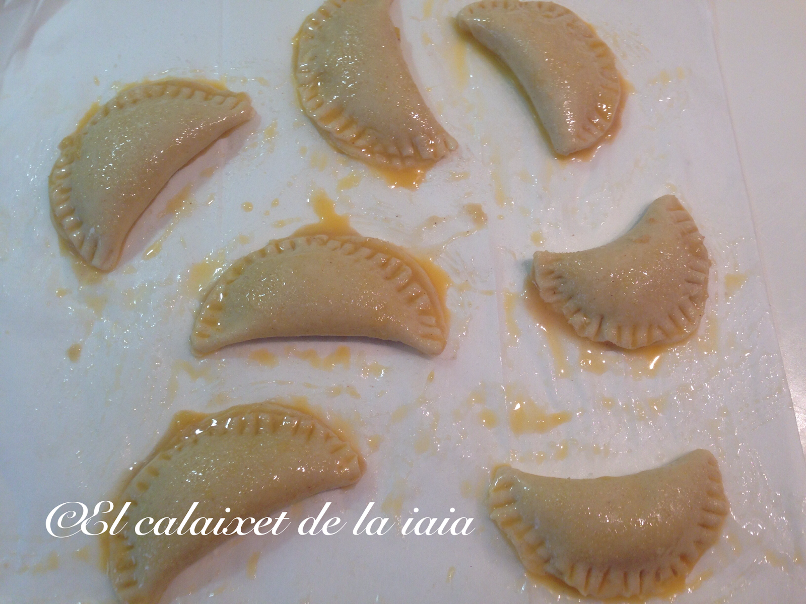 sellaremos los bordes, mojándolos previamente con un poco de agua o huevo, con un palo de brocheta o similar, realizamos unos agujeros para que hagan dechimeneas, pincelamos con huevo batido. Y al horno precalentado a 180º unos 35 minutos. Controlad el tiempo según vuestro horno, ya sabéis que