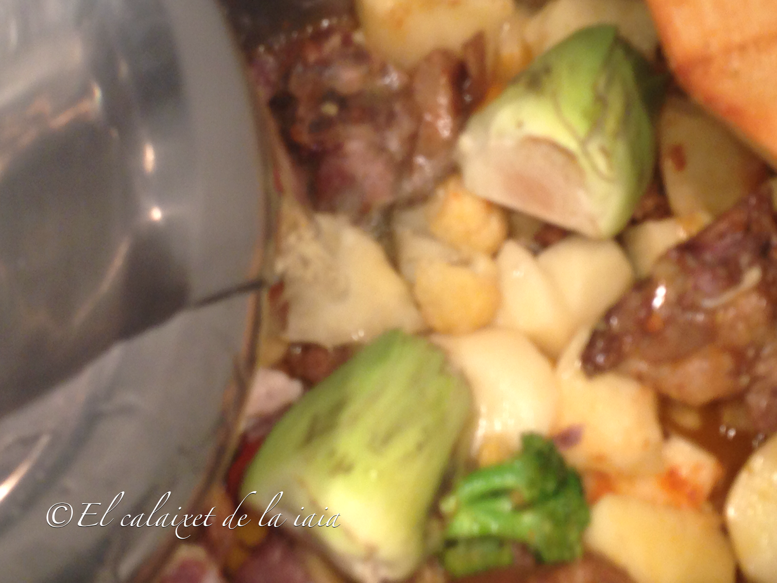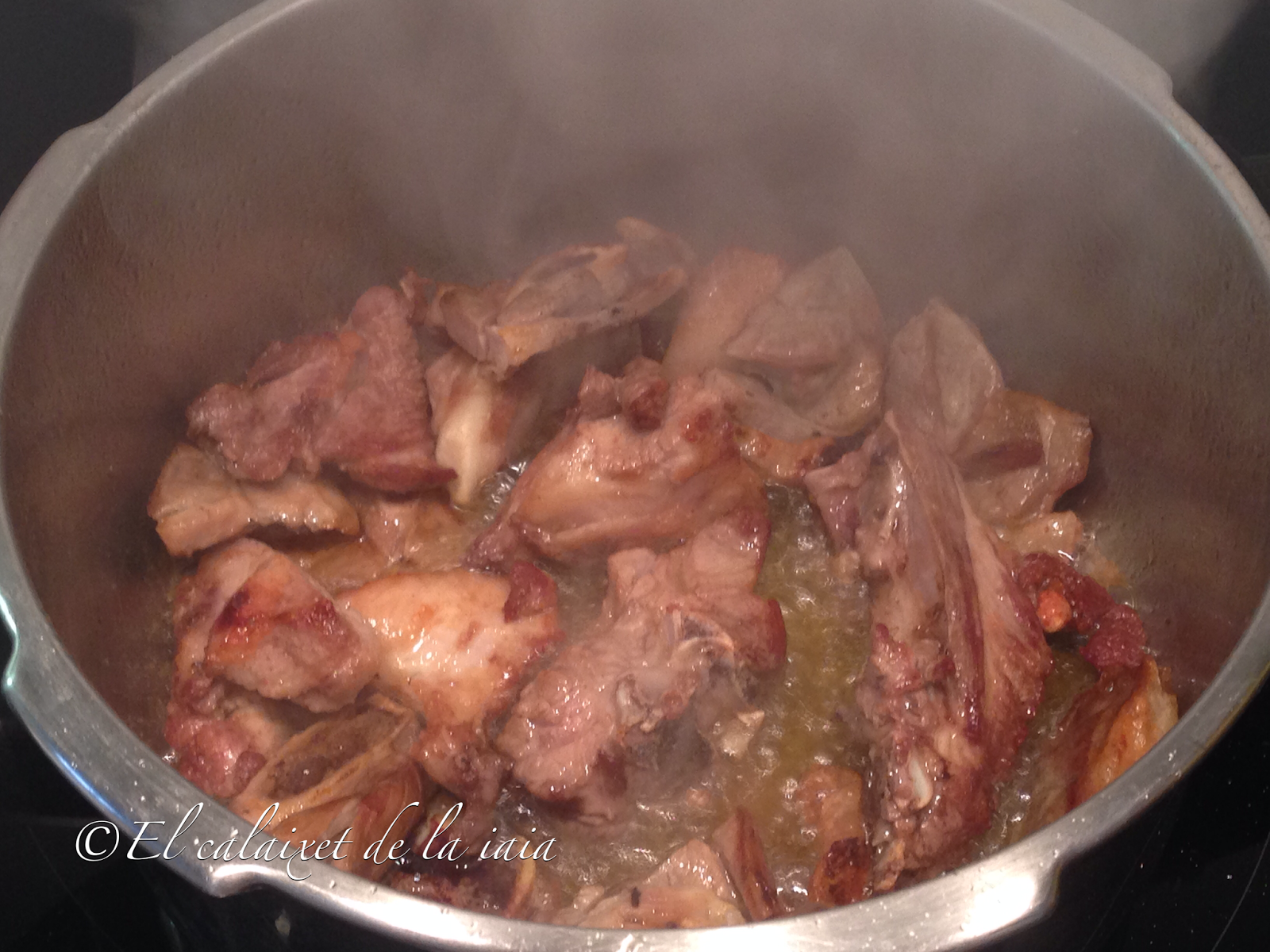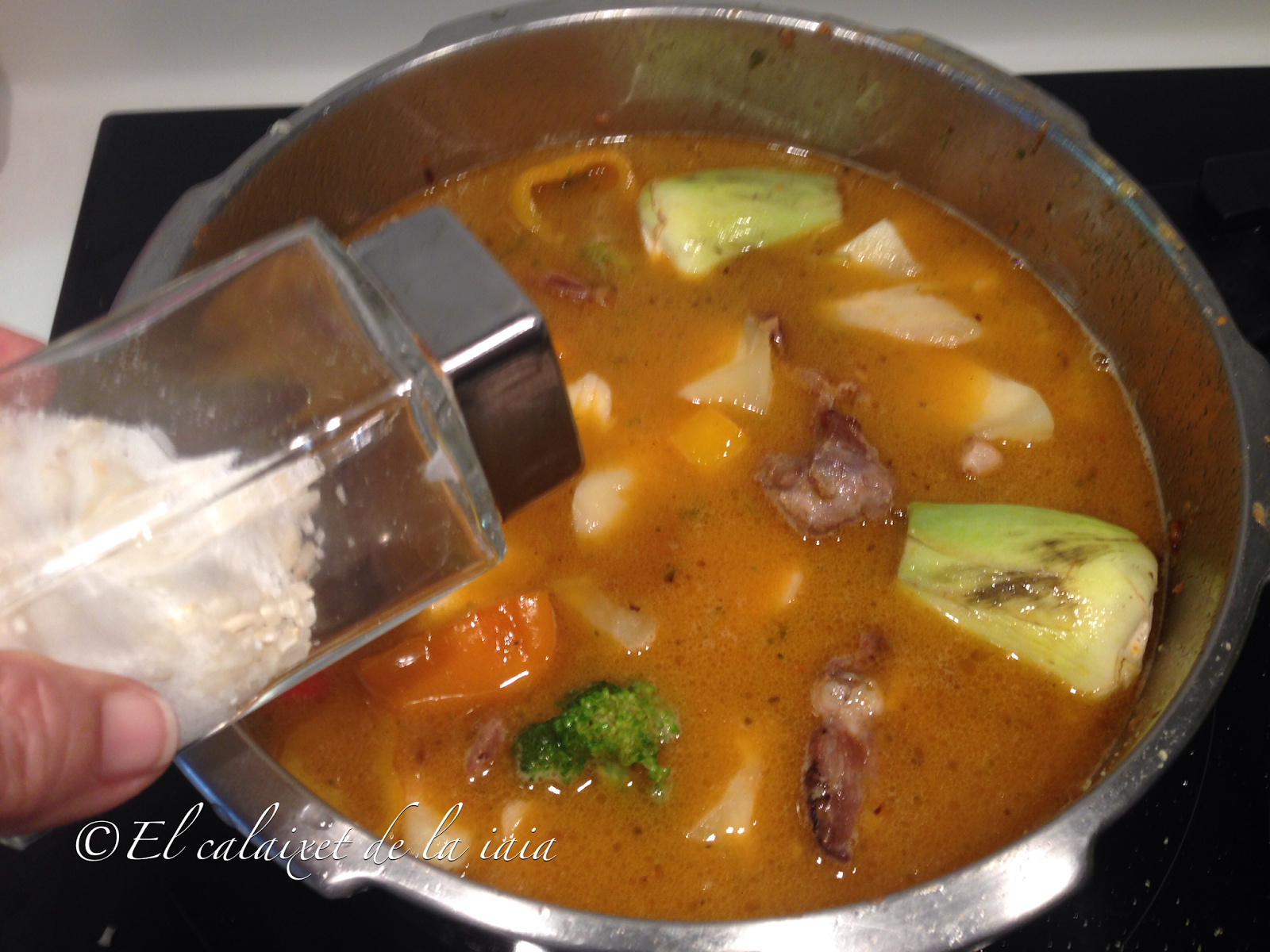 y tapamos la olla, que dejaremos a fuego mínimo durante 15 minutos al nº2 de la olla y a partir que comience a salir el vapor por la válvula. Si lo hacéis en olla expres, serán unos 25 minutos y en cazuela al chup, chup calcula unos 60/70 minutos. Estos tiempos son aproximados porque depende mucho de la olla o cazuela