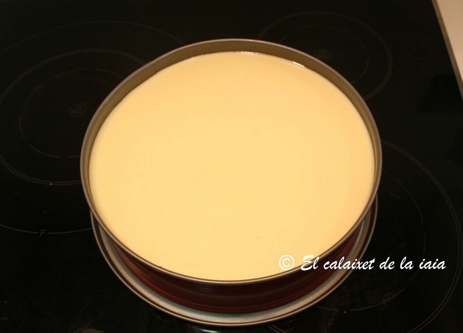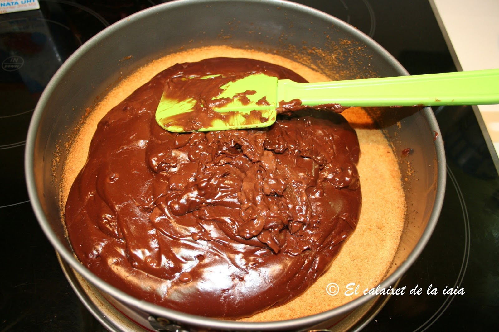 También se puede hacer con la Iber…que es similar a la Thermomix. Con la Iber pongo todos los ingredientes 7 minutos a 90º y velocidad 5. Vuelcas sobre la galleta y lo dejas enfriar para hacer la siguiente capa.