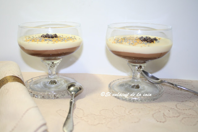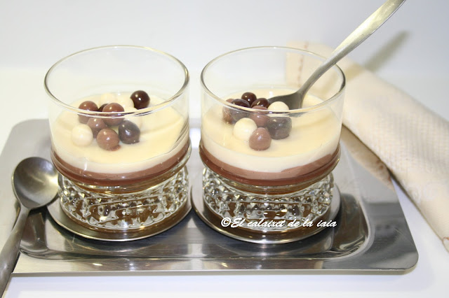 Recordar que es muy empalagosa y como veis las copas son muy anchas, por lo tanto, poner una cantidad pequeña de cada chocolate, de lo contrario, es demasiado pesada de comer.