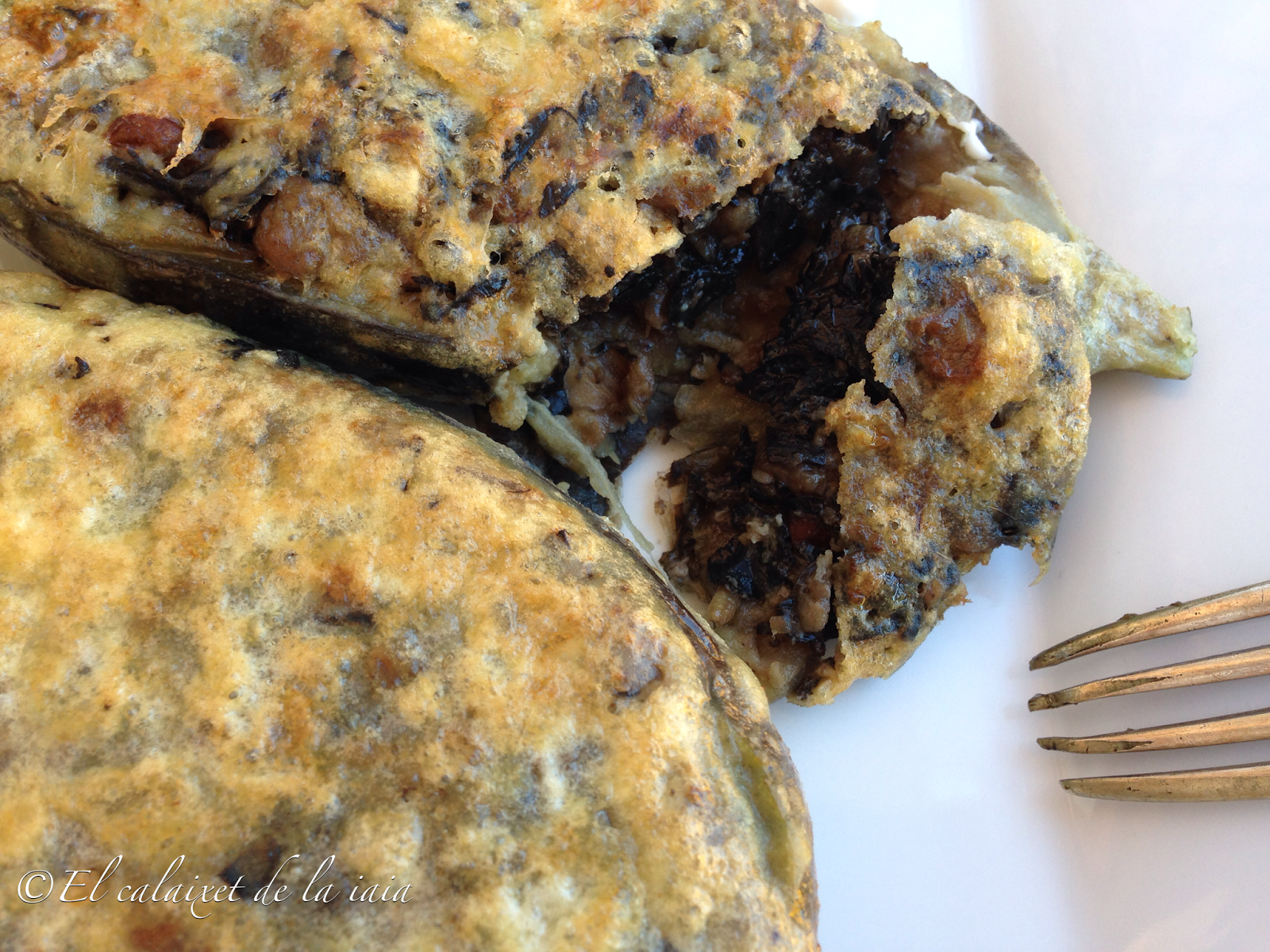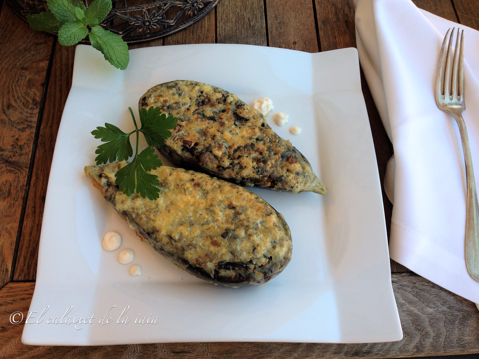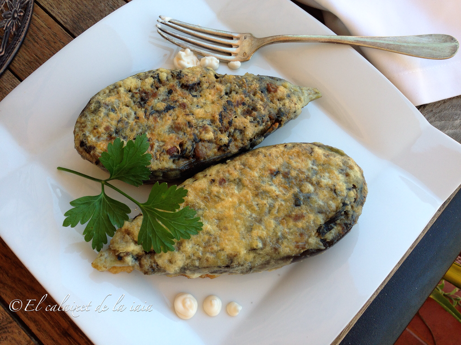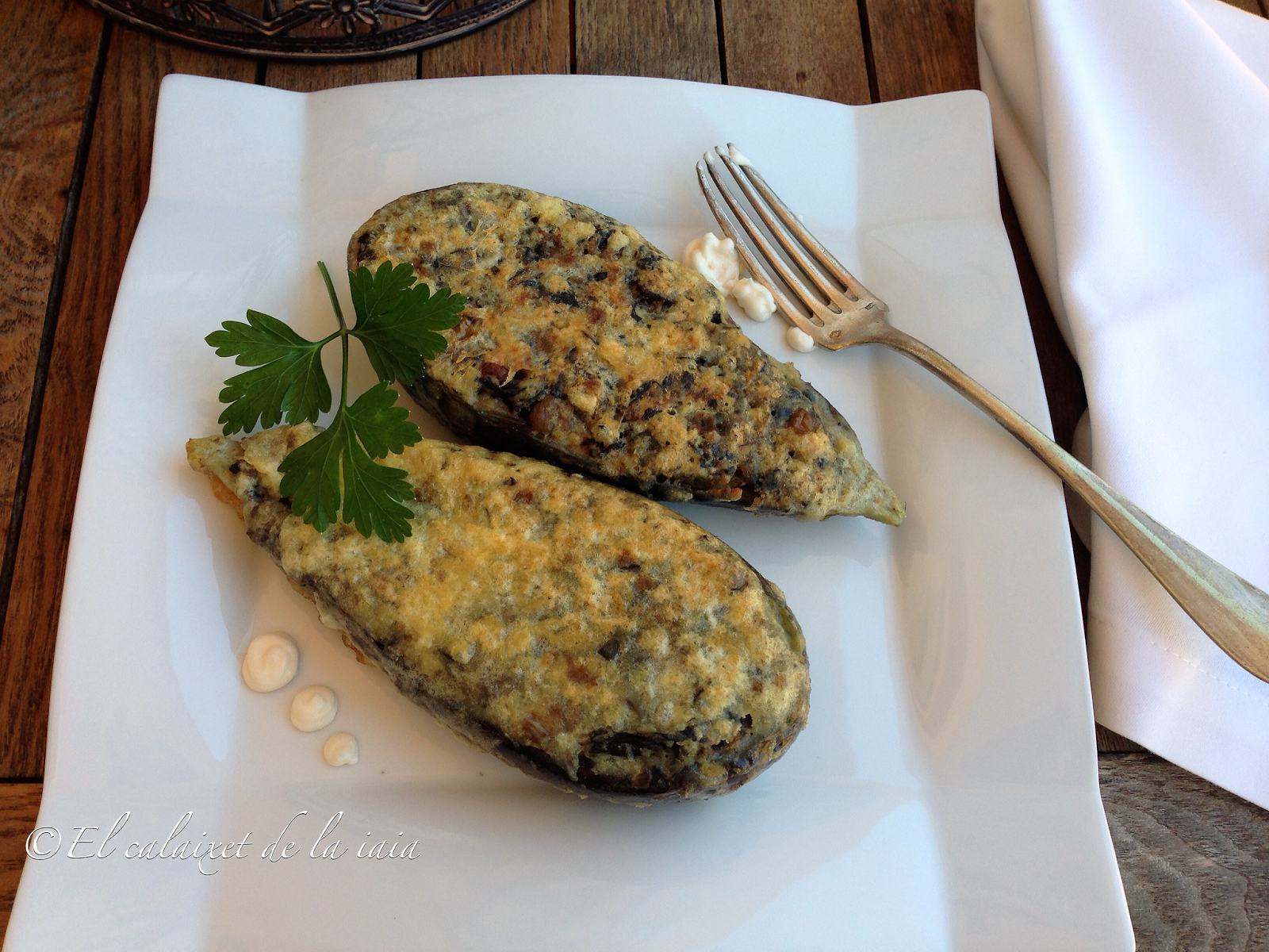 «Berenjenas rellenas con trompetas de la muerte y jamón serrano»