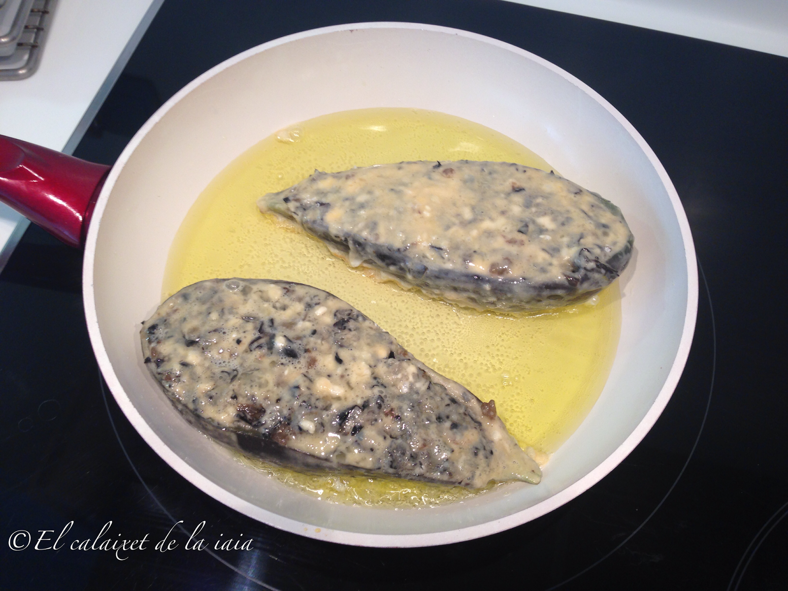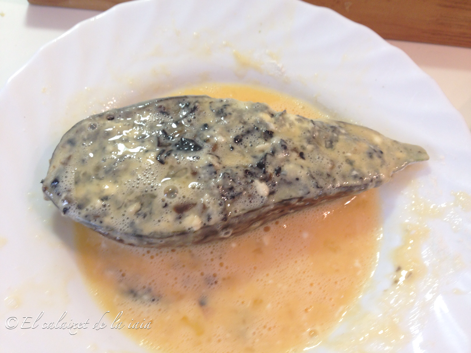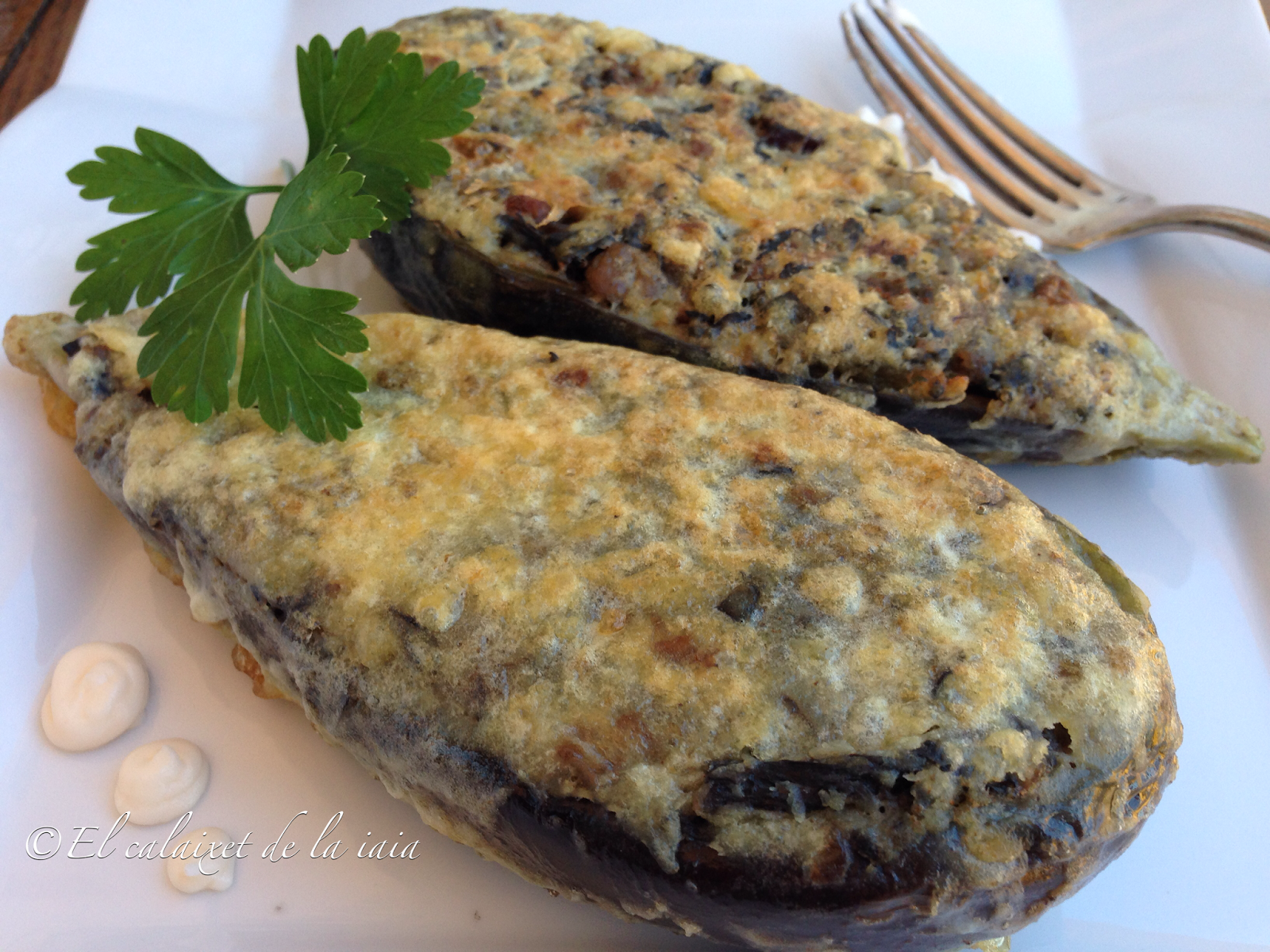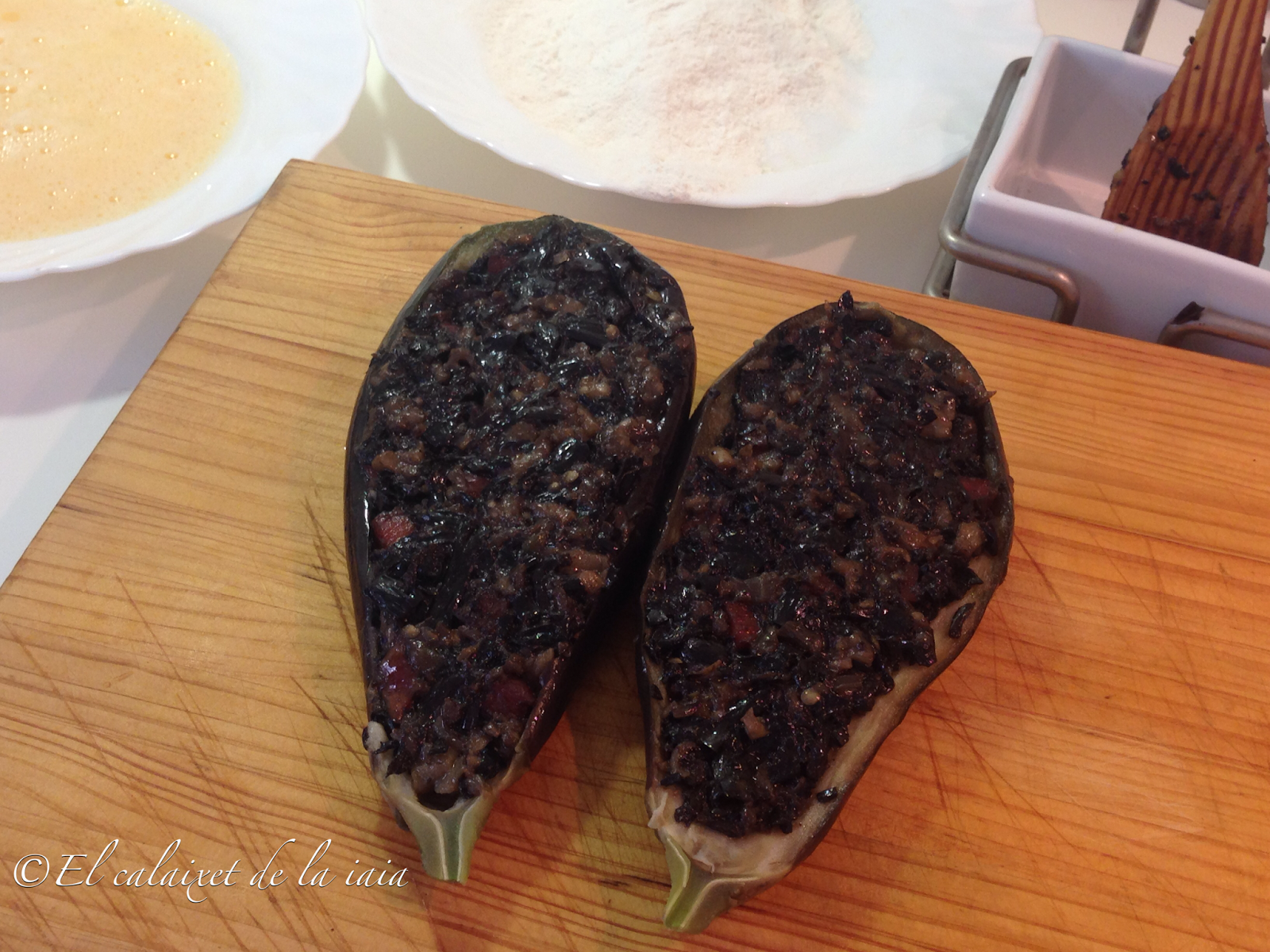 «Berenjenas rellenas con trompetas de la muerte y jamón serrano»