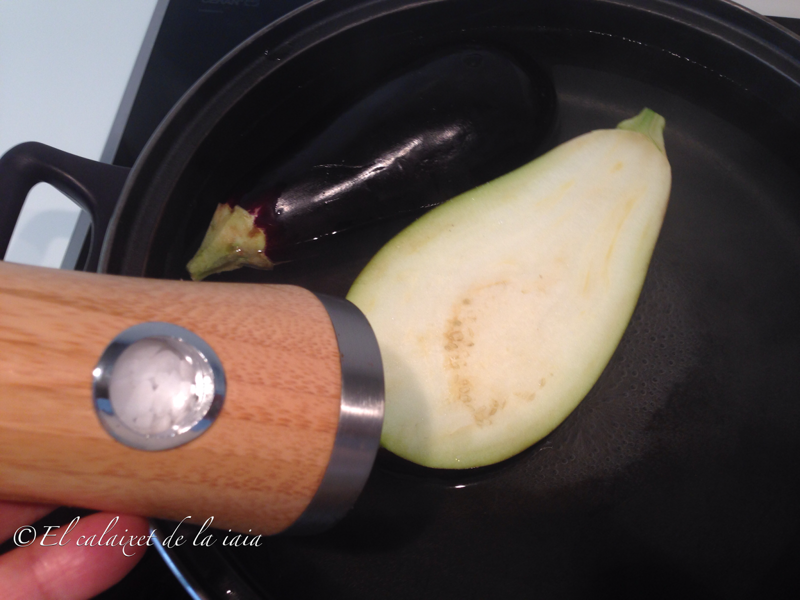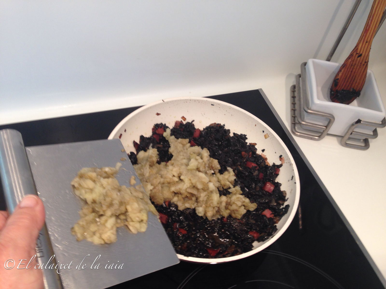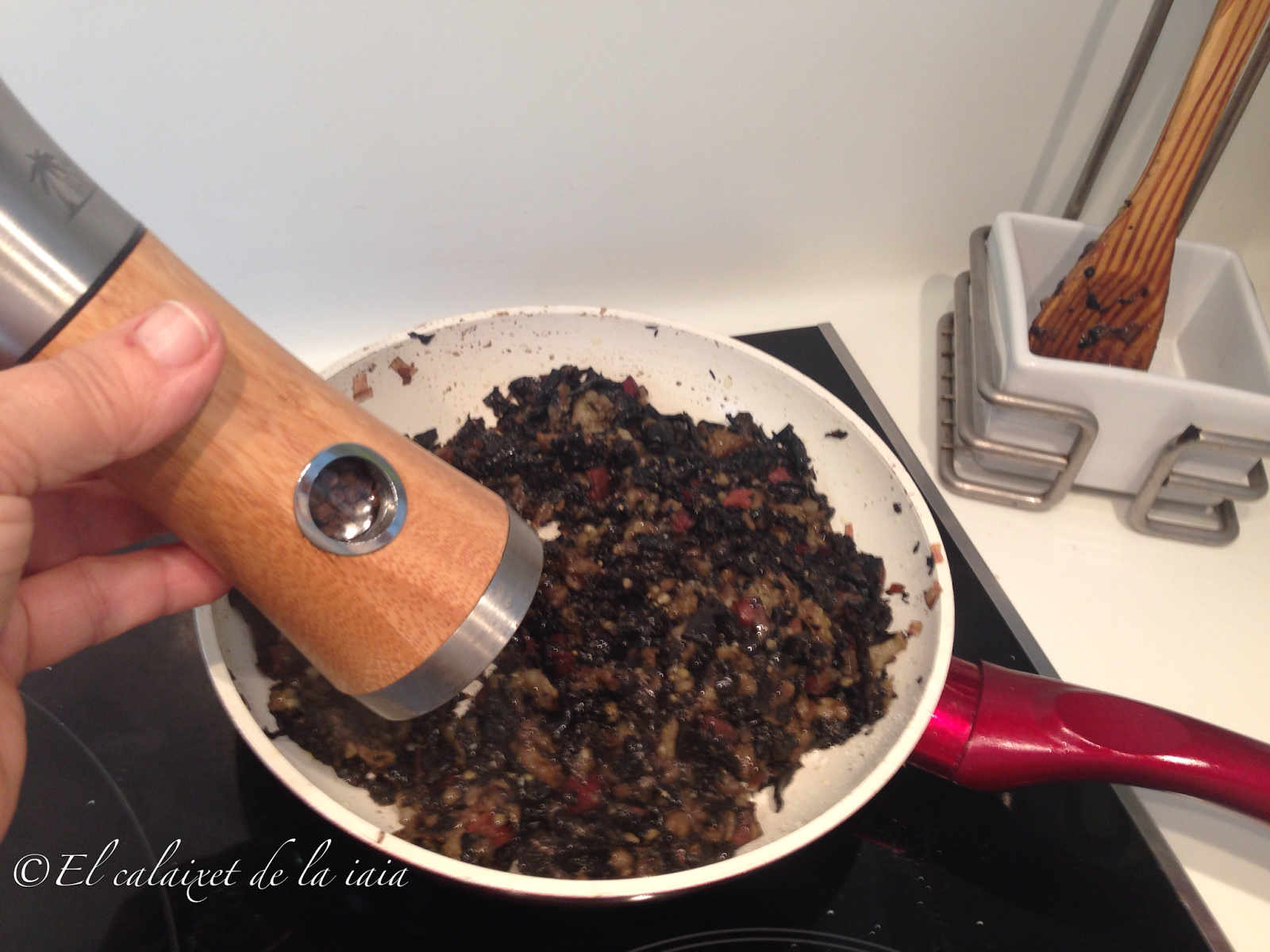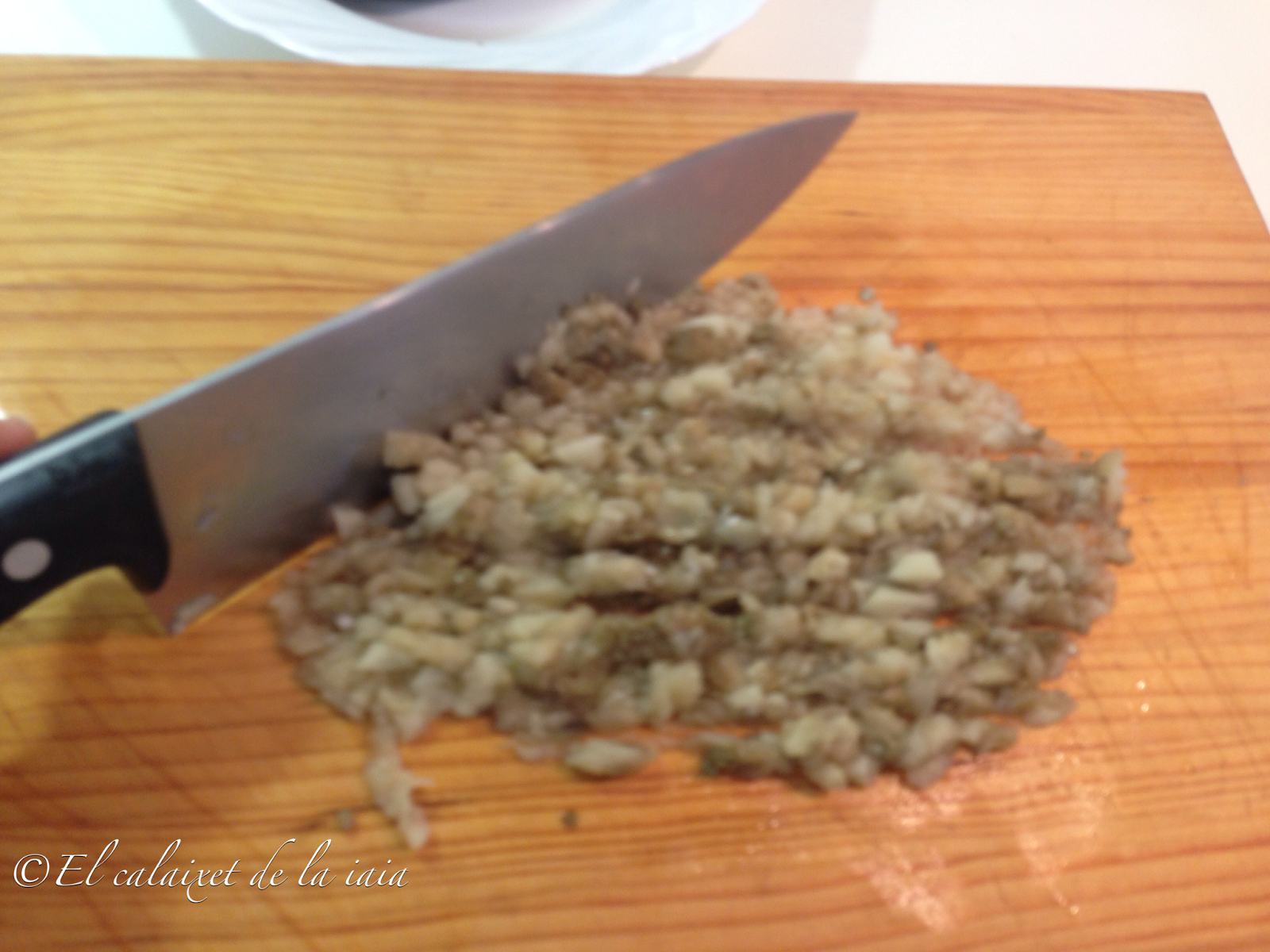«Berenjenas rellenas con trompetas de la muerte y jamón serrano»