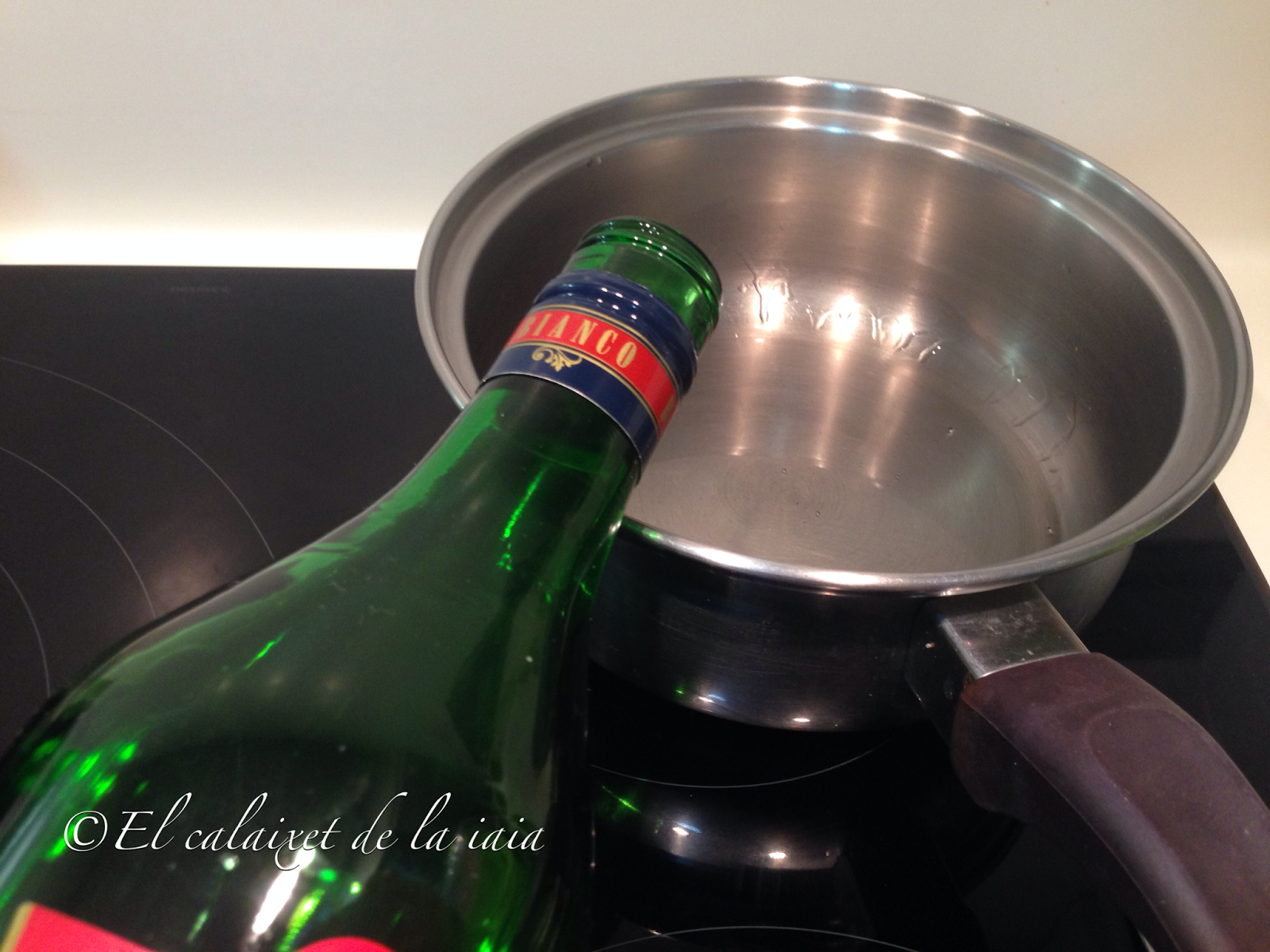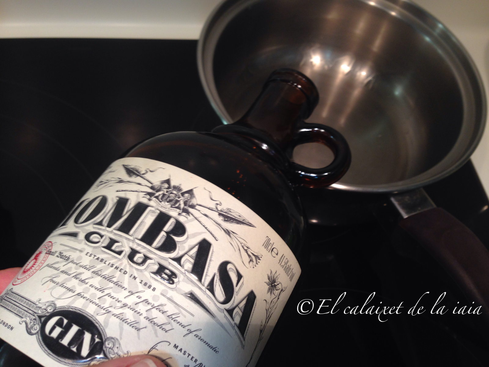 mientras tanto, pondremos en un cazo al fuego los 50ml de ginebra