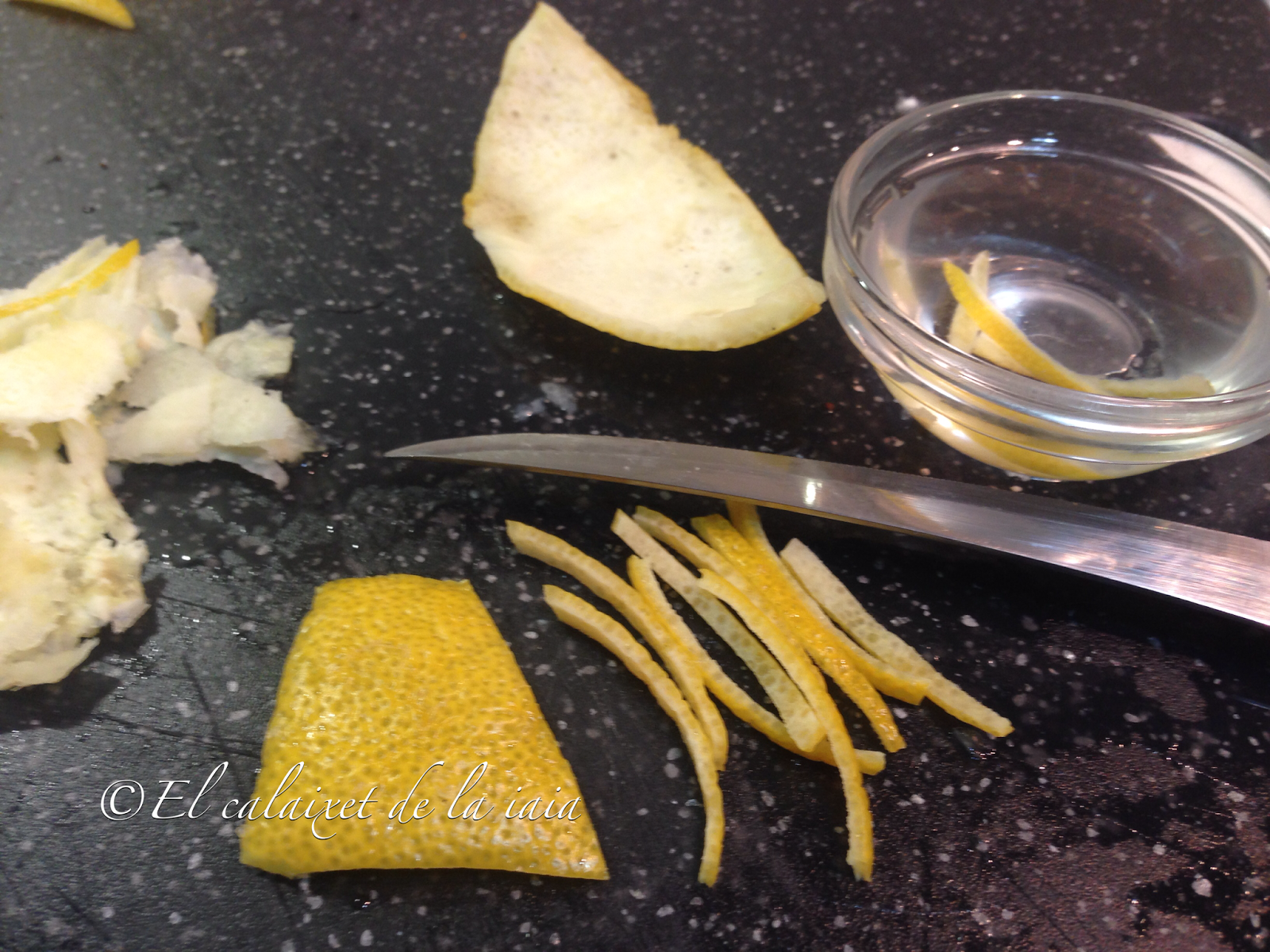 Comenzaremos lavando a fondo el limón y cortaremos unas tiritas de