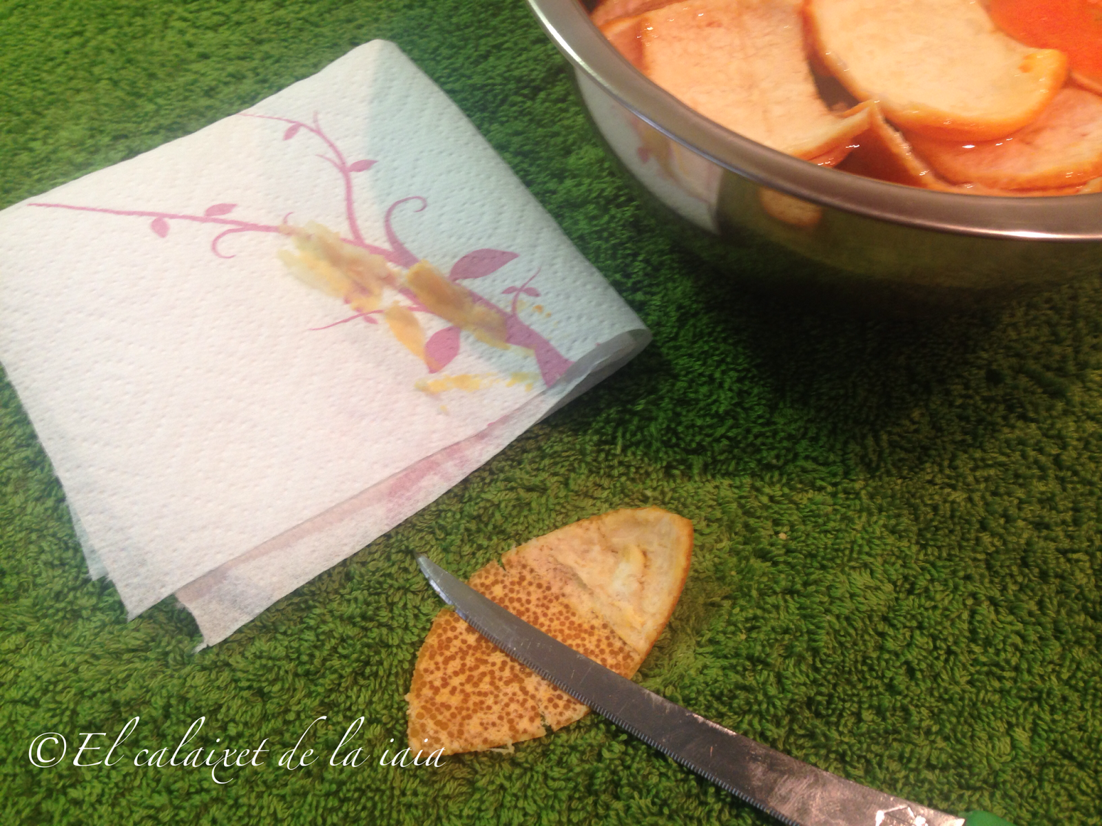raspando con un cuchillo, veremos que pronto y fácil sale toda la parte blanca de la mandarina, éste truco os sirve para cualquier cítrico