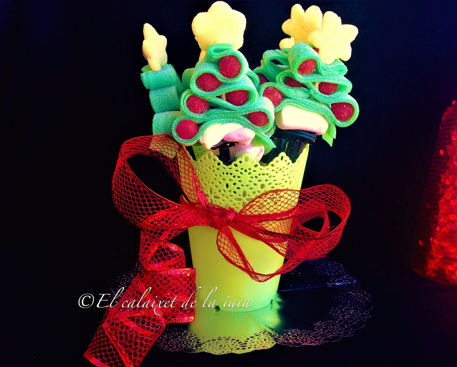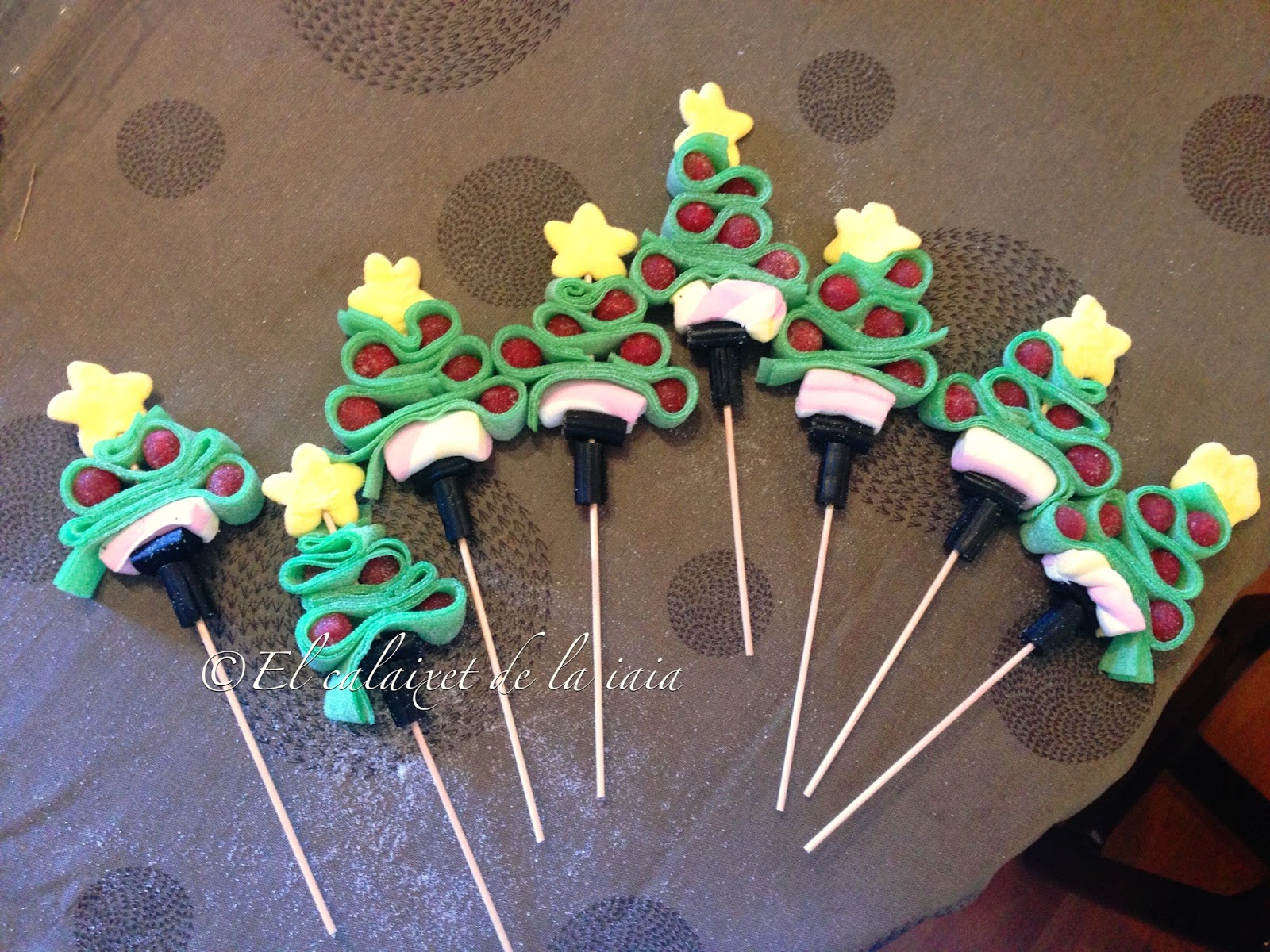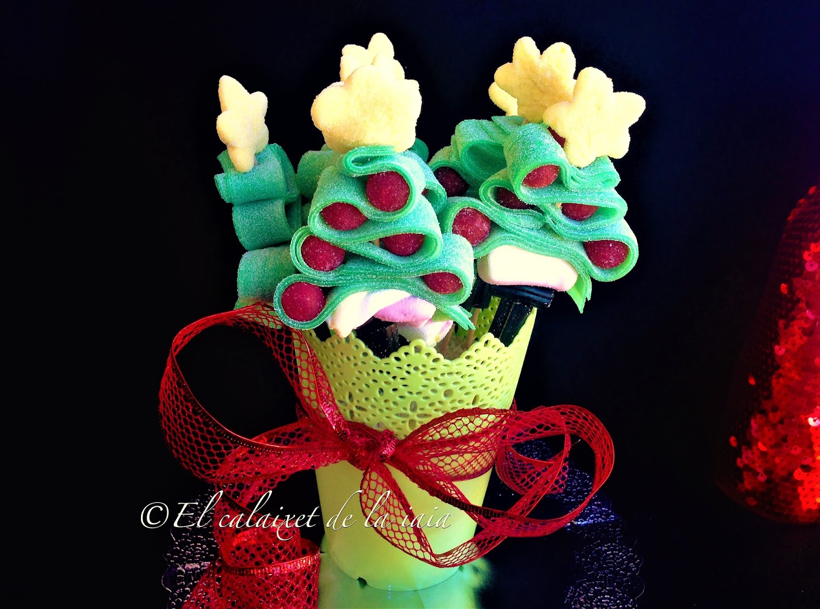 Unas brochetas de abetos de lenguas o cintas de chuches, son siempre una buena opción para agasajar a los peques (y no tan peques jeje), tras una comida o cena de las muchas que tenemos durante éstos días.