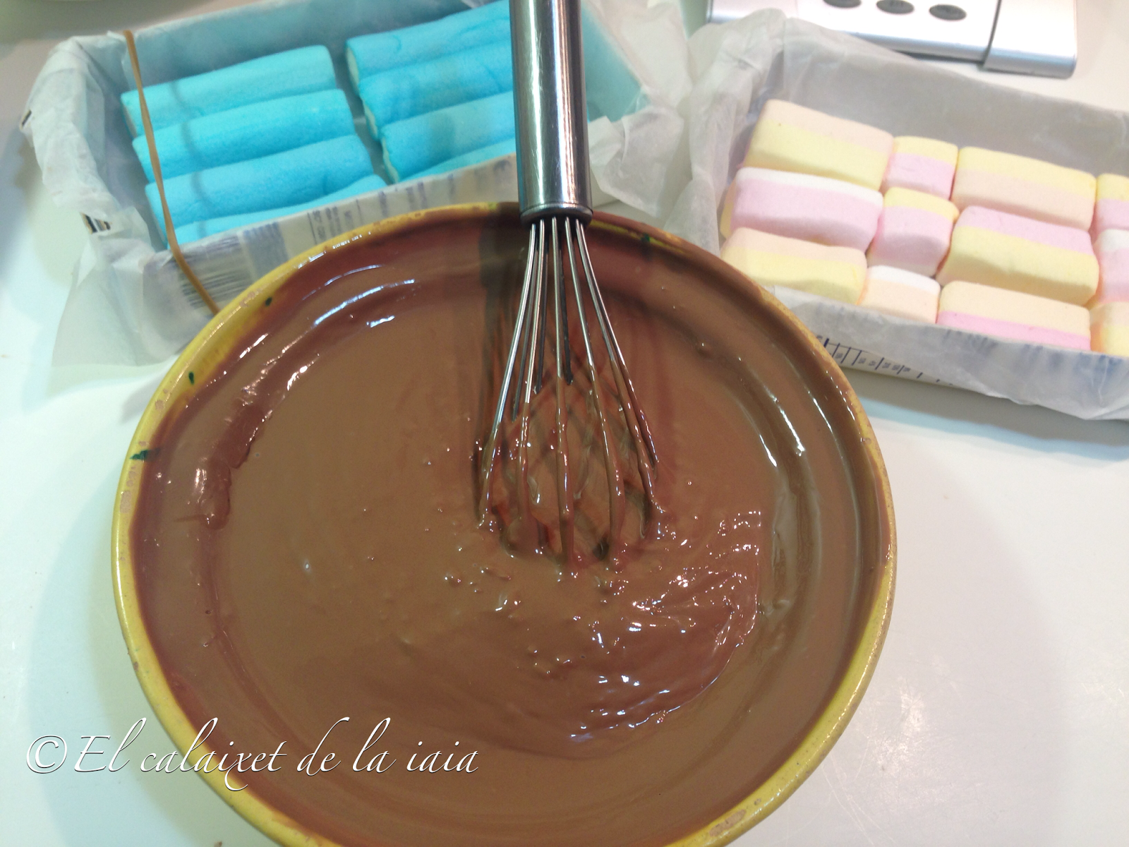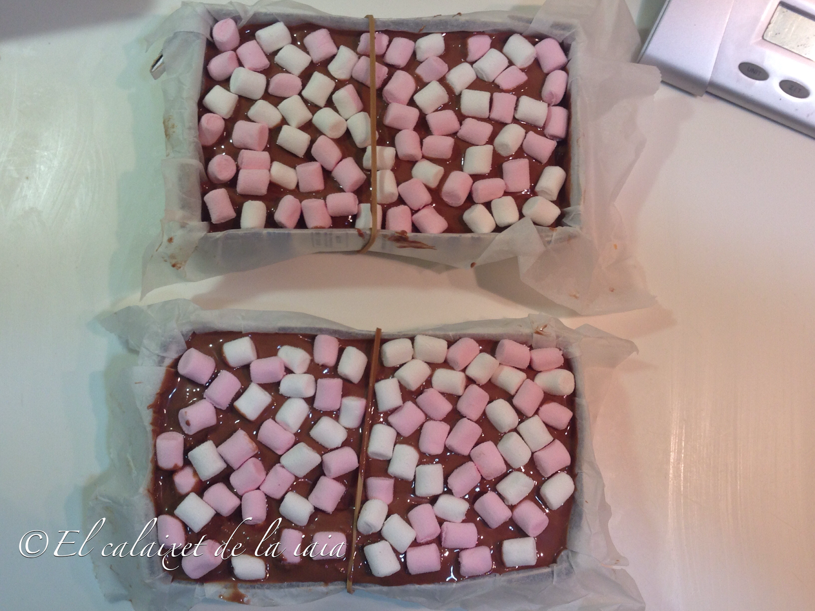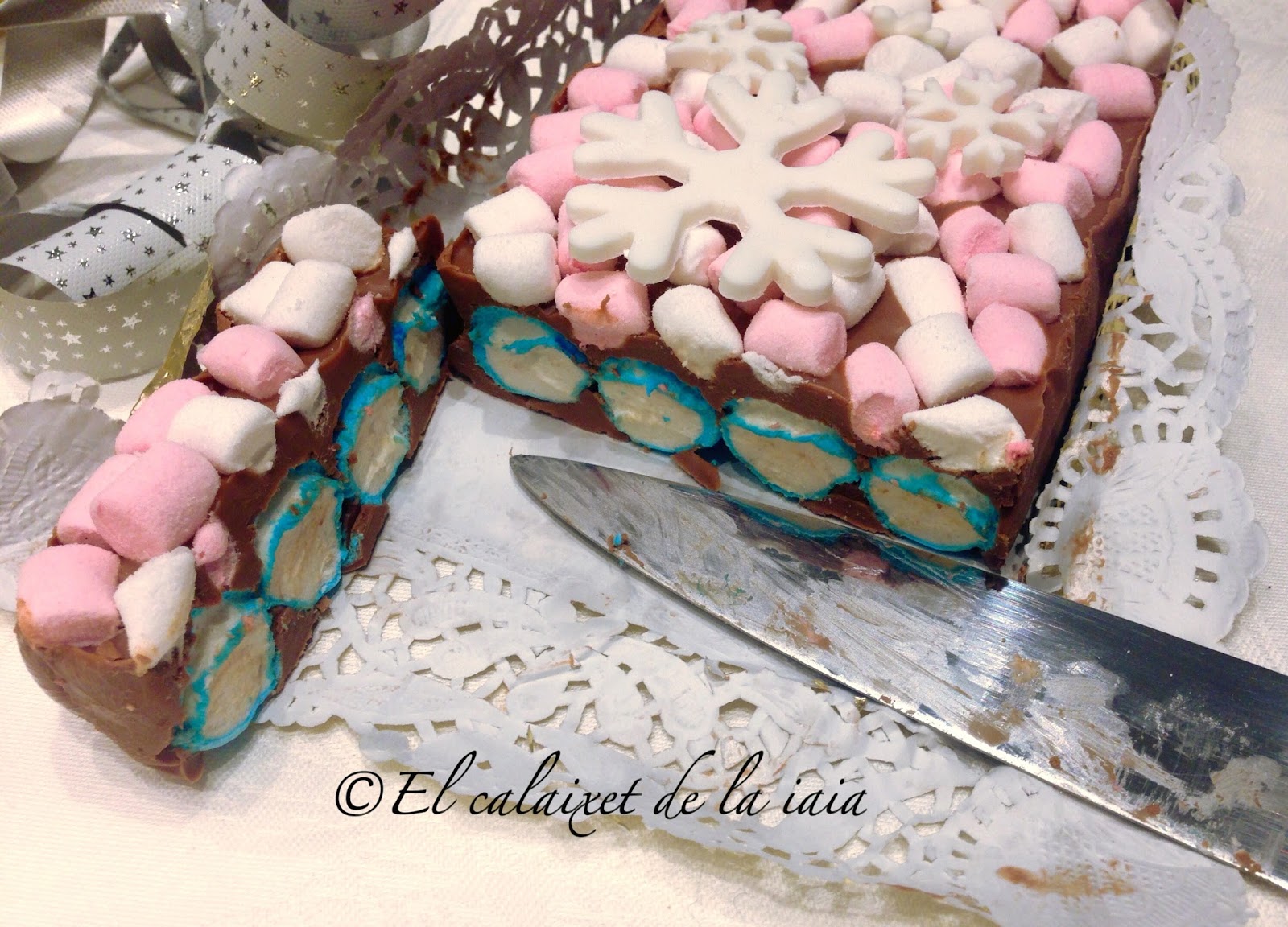 Ya llevo unos años haciendo mis turrones de chocolates en casa y uno de los que más éxito tiene es éste de chocolate con nubes, masmelos, esponjitas, jamones, bombones, fringuels, malvaviscos o marshmallows, que son los distintos nombres que tienen éstas delicias que encantan a peques y no tan peques.