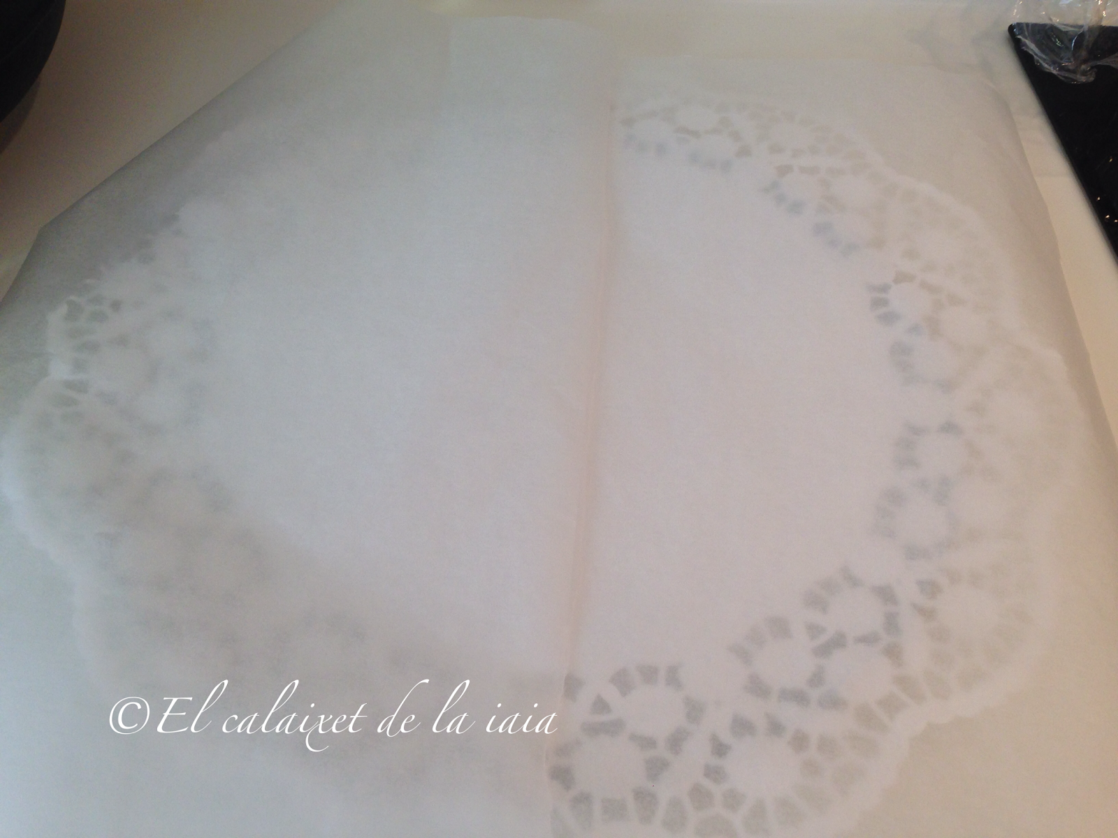 preparamos la base donde colocaremos la tarta y la cubriremos con dos trozos superpuestos en el centro, de papel de horno o sulfurizado