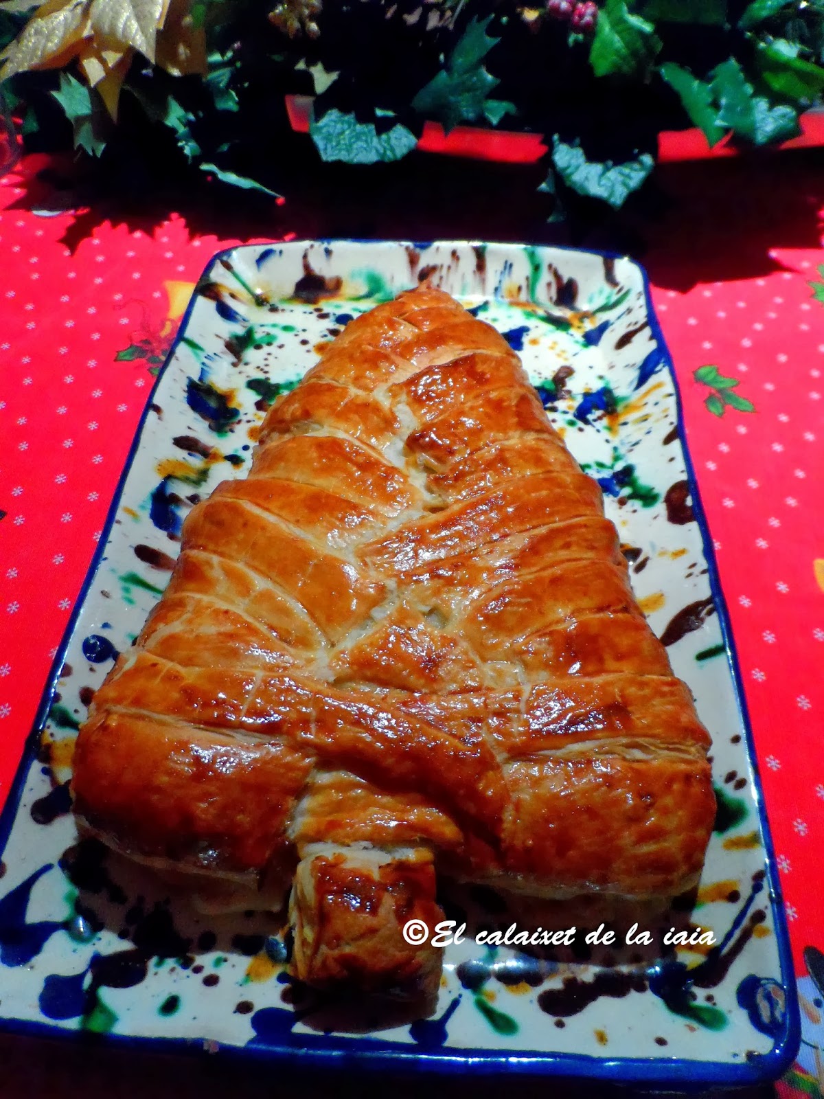 Lo he hecho cambiando el relleno, pues a mis invitados no les va el pescado. He cambiado la merluza y las gambas por carne picada de pollo y pavo y tiritas de bacón y todo lo demás igual. El resultado nos ha encantado. Un saludo y Feliz Navidad