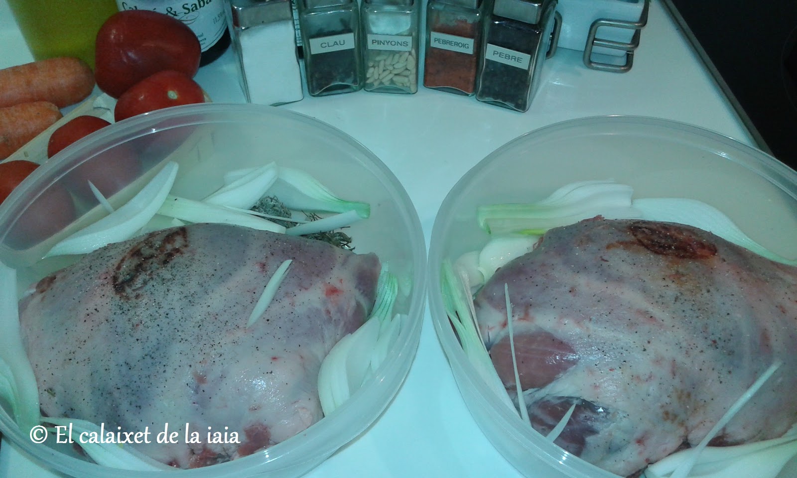 Lo primero pedir al carnicero que nos deshuese completamente las piernas,(las del cordero claro…)