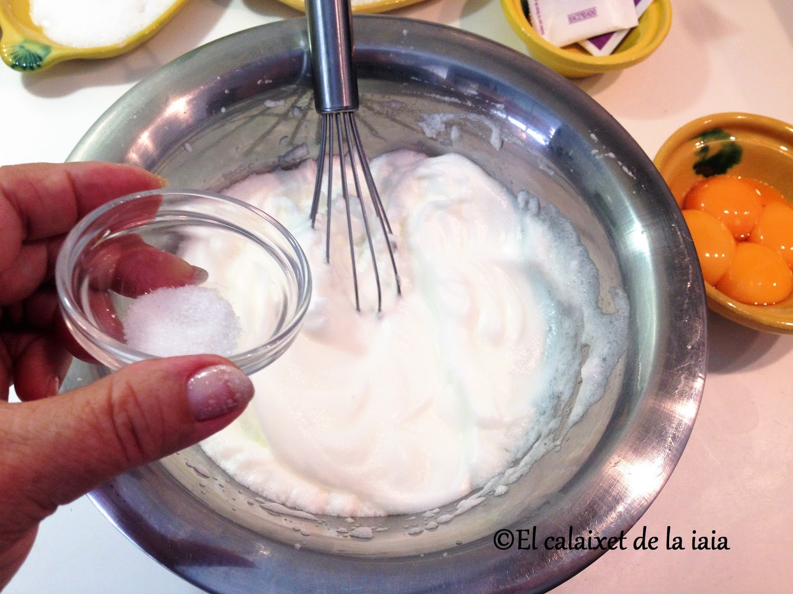 Hoy la he preparado con la receta original que me dió la iaia, (aunque con los años he ido haciendo variaciones que luego os explicaré) porque he querido mantenerme fiel a la tradición, aunque a mi el coco no me gusta nada, de vez en cuando hago ésta tarta porque merece la pena ver la cara de felicidad de mi padre, cuando come un trocito de ella y lo transporta a La Font y a tiempos muy dichosos, y me da a mi que cuando la pruebe mi nuera, voy a tener otra adicta a la Fabiola jeje.