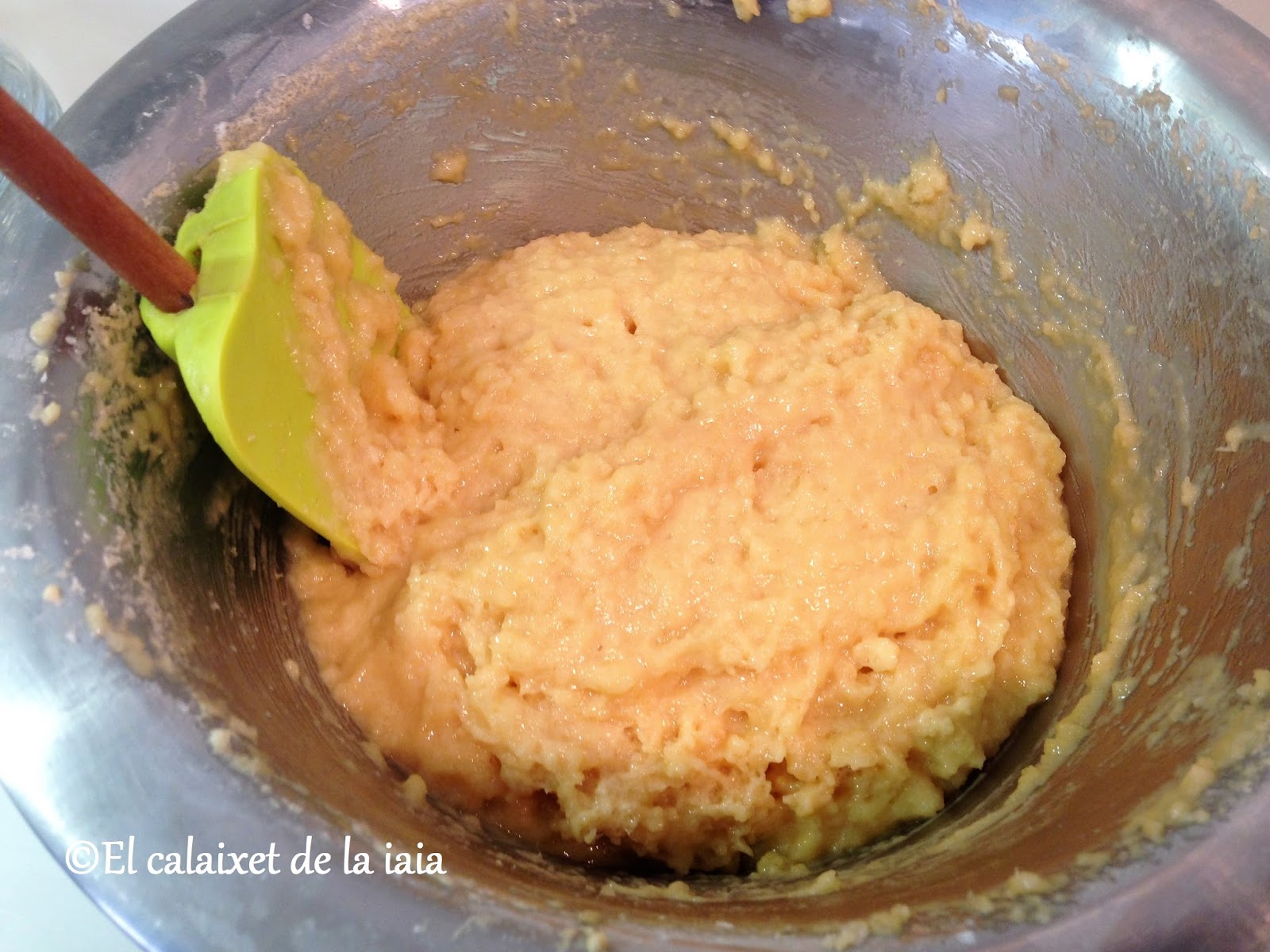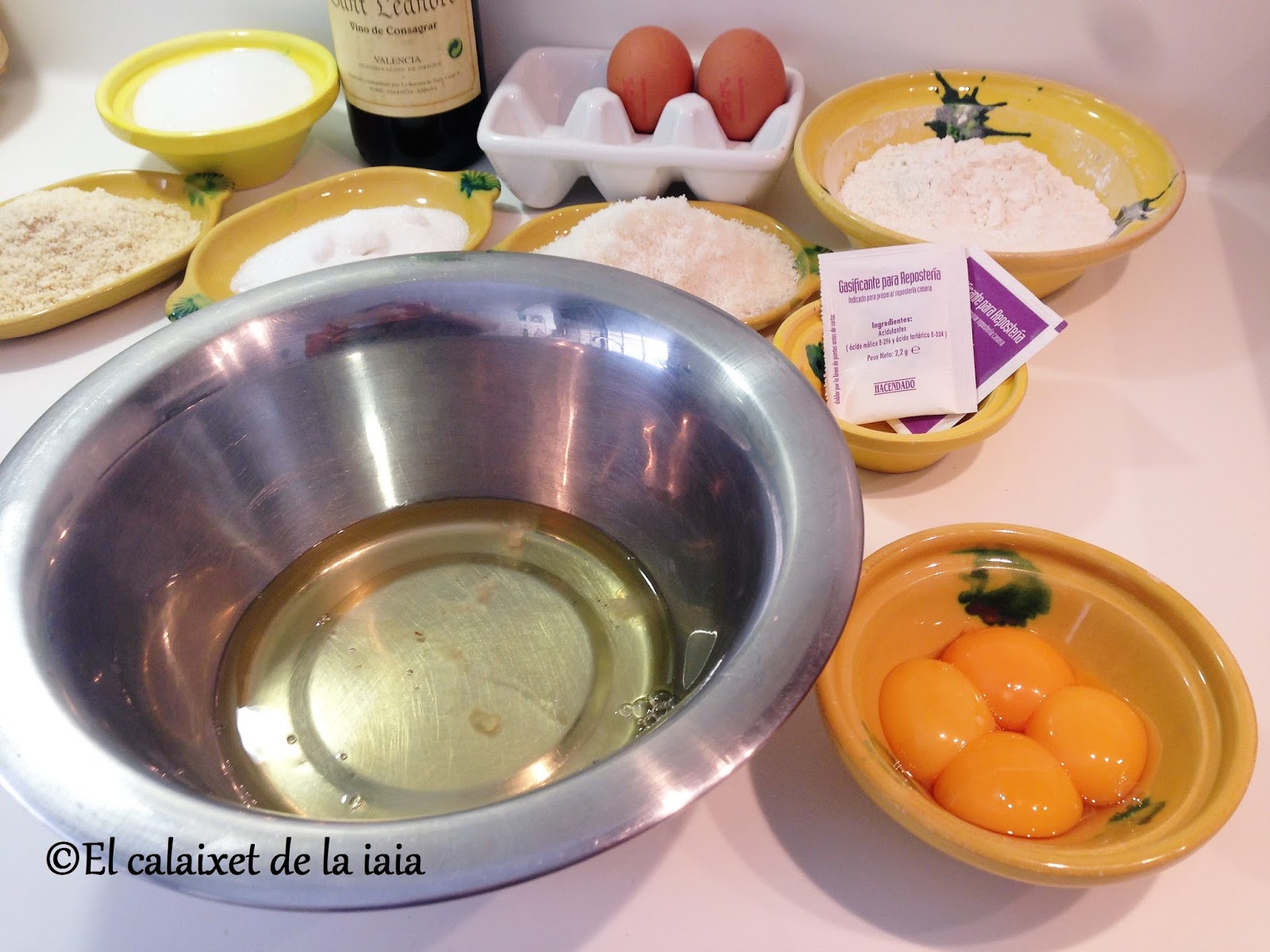 La receta que os traigo es la original de mi iaia Isabel, y a su vez de mi besiaia Sabeleta, su madre, aunque me contaba el iaio Antoniet, que su madre María, la hacía igual. La iaia me contaba que éste bizcocho se cocía en una especie de olla de hierro en forma de corona y al fuego de la cocina de leña, en la chimenea del suelo, sobre los «tres pèus», como era lo típico en aquella época, según recuerda aún mi padre. La iaia tenía ésta receta en en la cabeza y como muchas otras, me las fui apuntando en una libretita hace muchísimos años, cuando de joven y soltera ya iba recopilando recetas de las tías y las iaias.