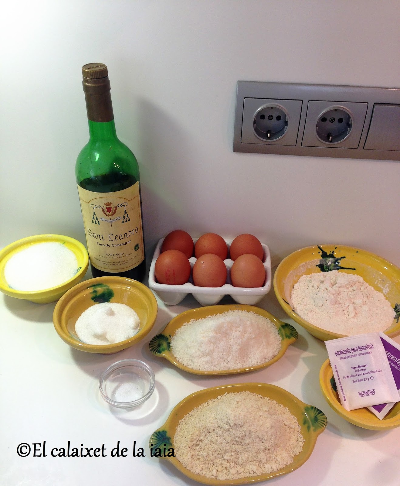 Bueno, pues como os decía, he soñado ésta noche con el pueblo de mi padre, (en los ratos que el ventilador de techo permitía el sueño claro, porque vaya nochecita de fastidioso calor tropical hemos tenido ésta noche en Valencia), la cuestión es que he amanecido con la idea de hacer un «Bescuit Fabiola»que a mi padre le encanta y he recordado que aún no tenía la receta en el blog, así que aprovechando que iba a La Salud, me he acercado al mercado de Algirós y he comprado el coco y la almendra rallada.