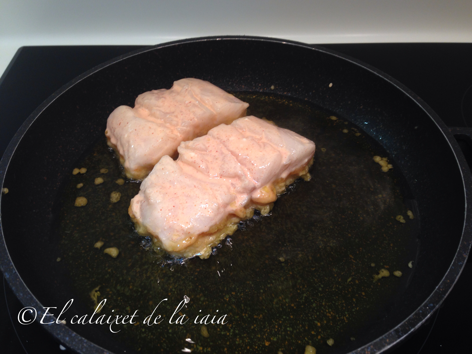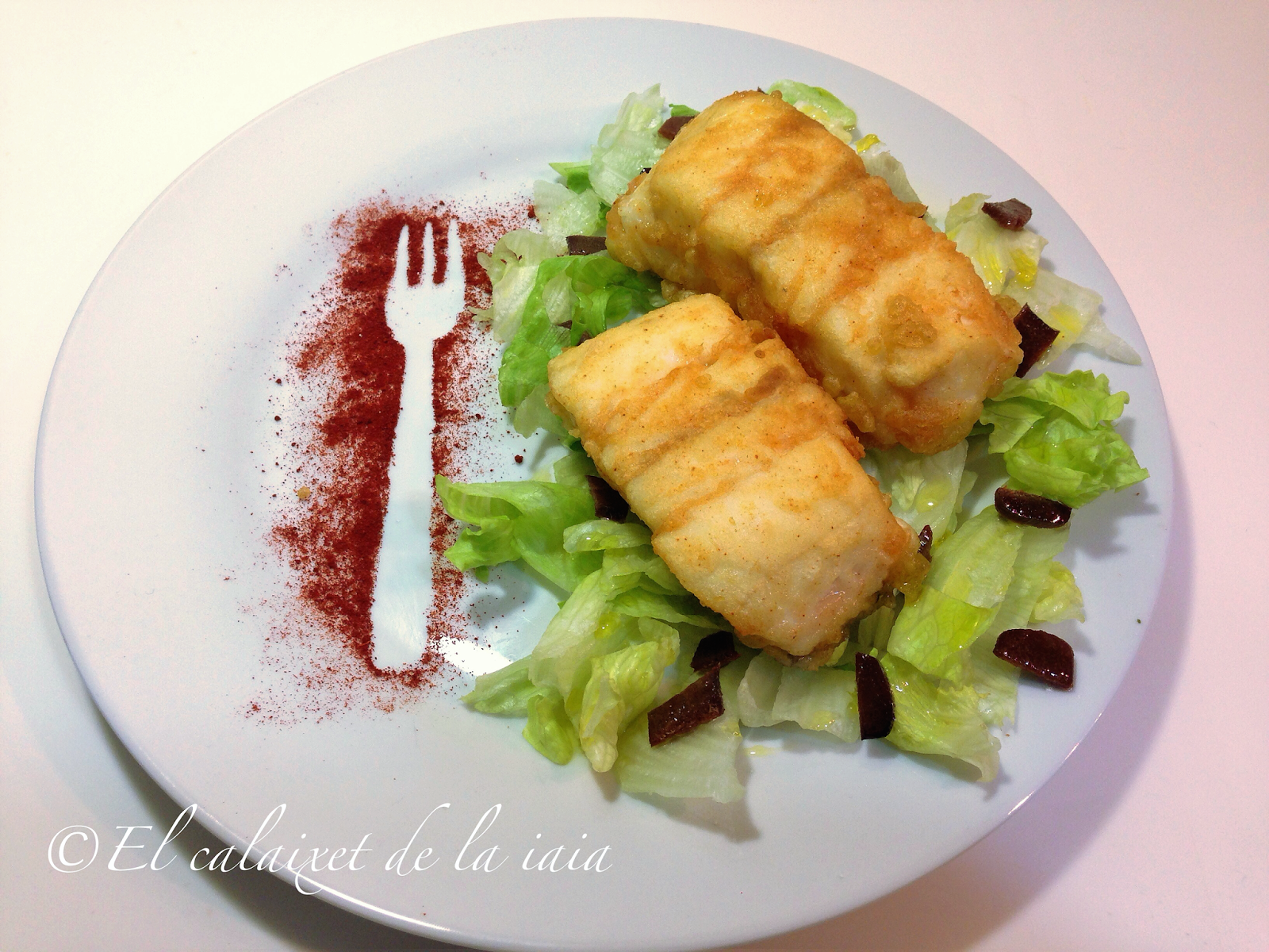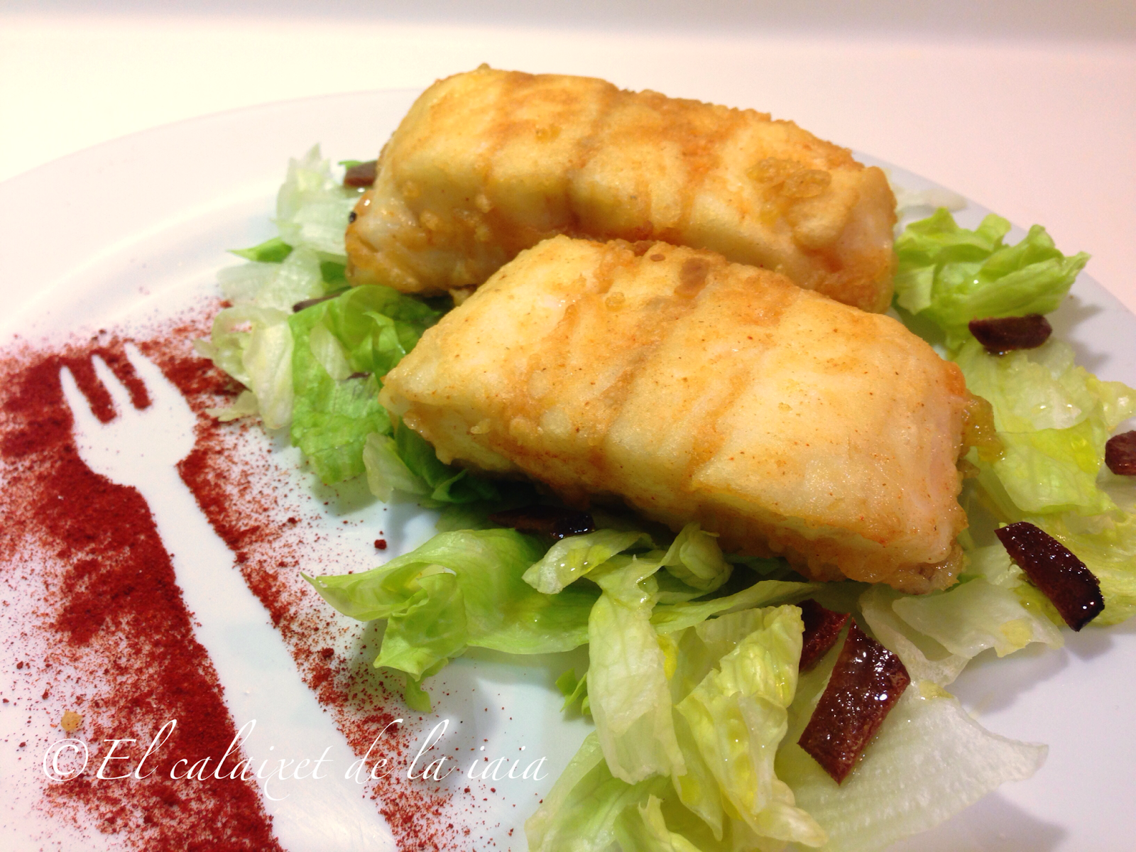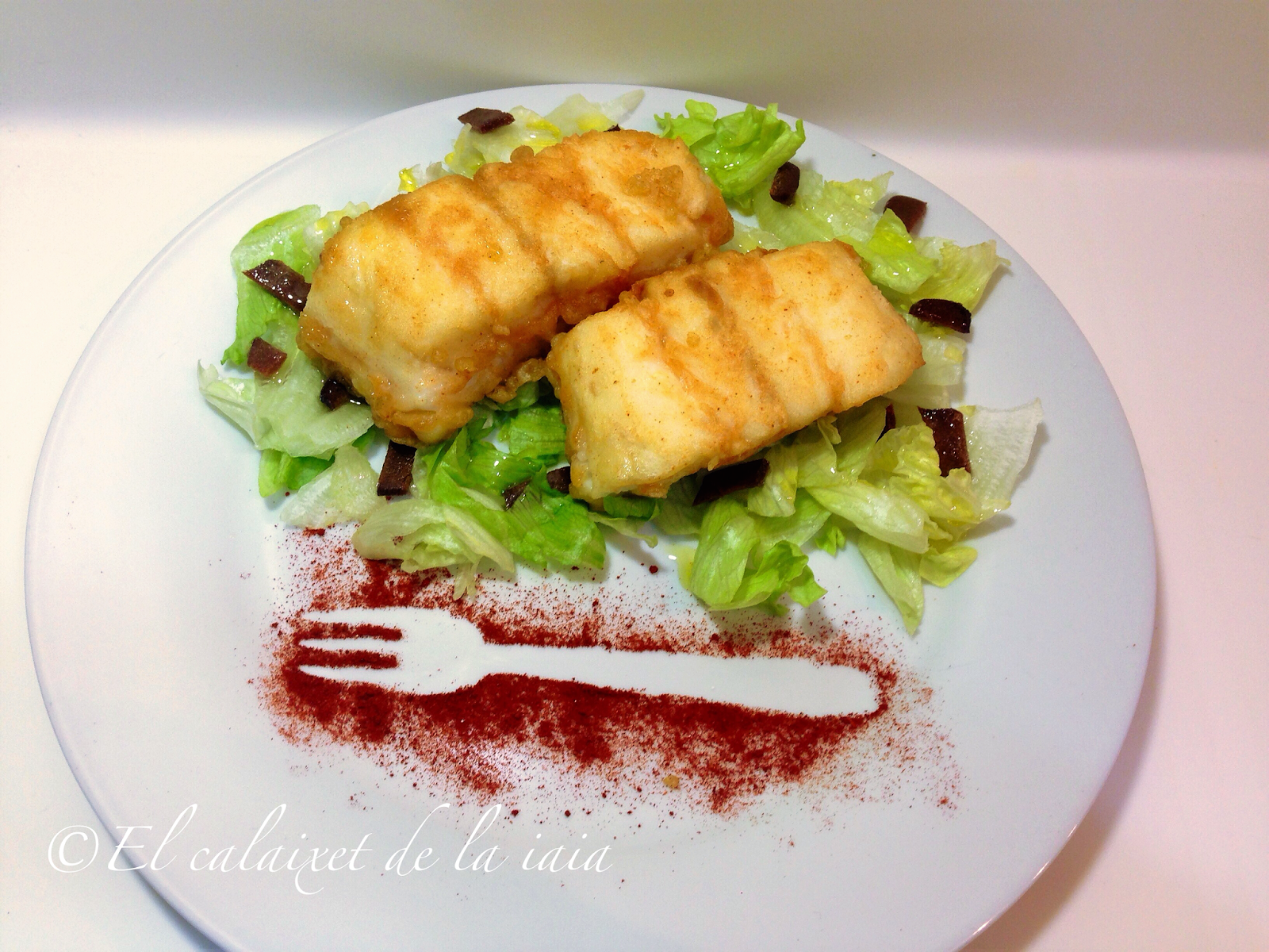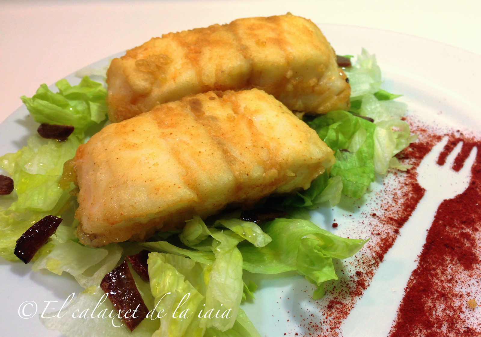 De segundo, con la mitad de la pieza. hemos comido una merluza rebozada en tempura de pimentón de la Vera, que estaba deliciosa y muy jugosa.
