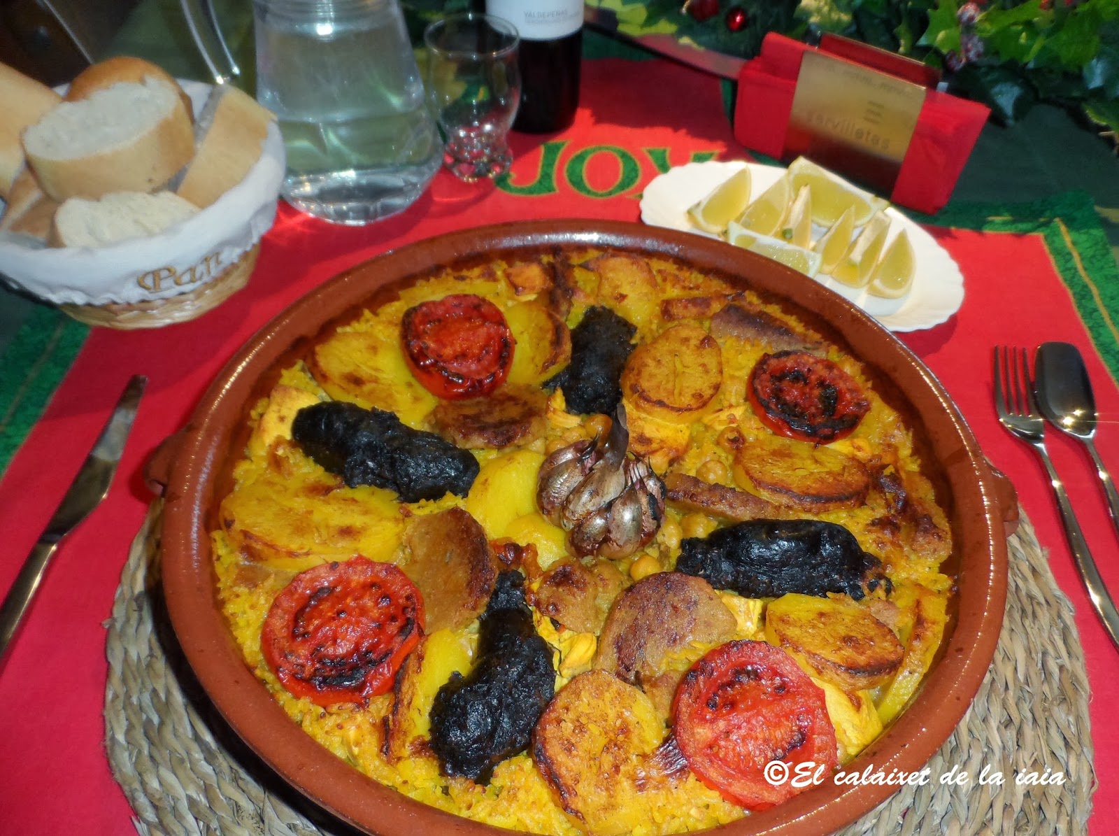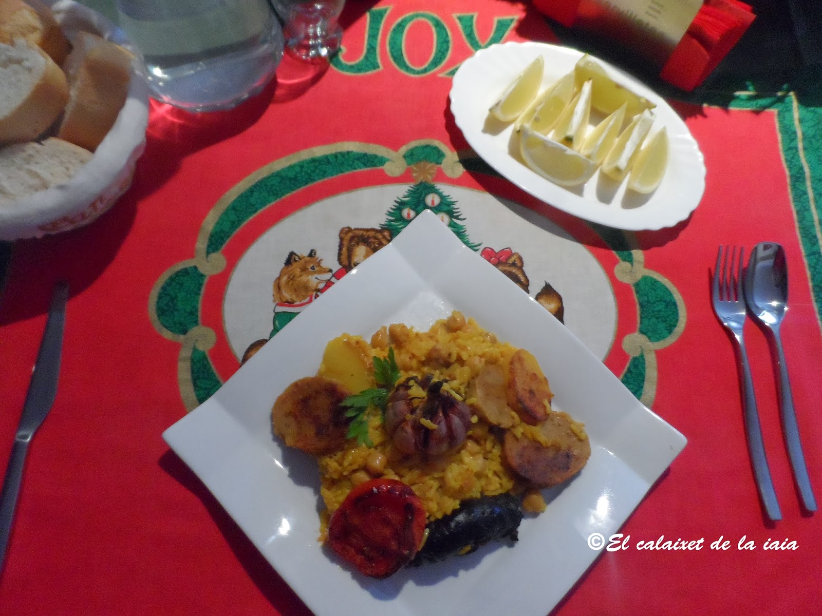 Ya lo dice el refrán valenciano, para el día siguiente de Navidad arroz de Catedral y se refería a que pasada una fiesta tan importante, y tras el esfuerzo económico de poner las mejores viandas en la mesa para Nochebuena y Navidad, el bolsillo quedaba tan escurrido, que habría que ir a por el arroz que se echaba a los novios a la puerta de la Catedral, y recogerlo para comer… pues eso, que entonces aún no había aparecido por nuestras tierras, Papá Noel, con los regalitos, ni los amigos invisibles, pero bueno, habían muchas carencias económicas, y era lo que se decía entonces y yo lo cambio actualizando a que «A l’endemá de Nadal, un arròs com una Catedral», porque esto es lo que hay siempre en mi mesa el segundo día de Navidad, o sea al día siguiente, «l’endemà,» un arroz como una Catedral de grande y de rico.
