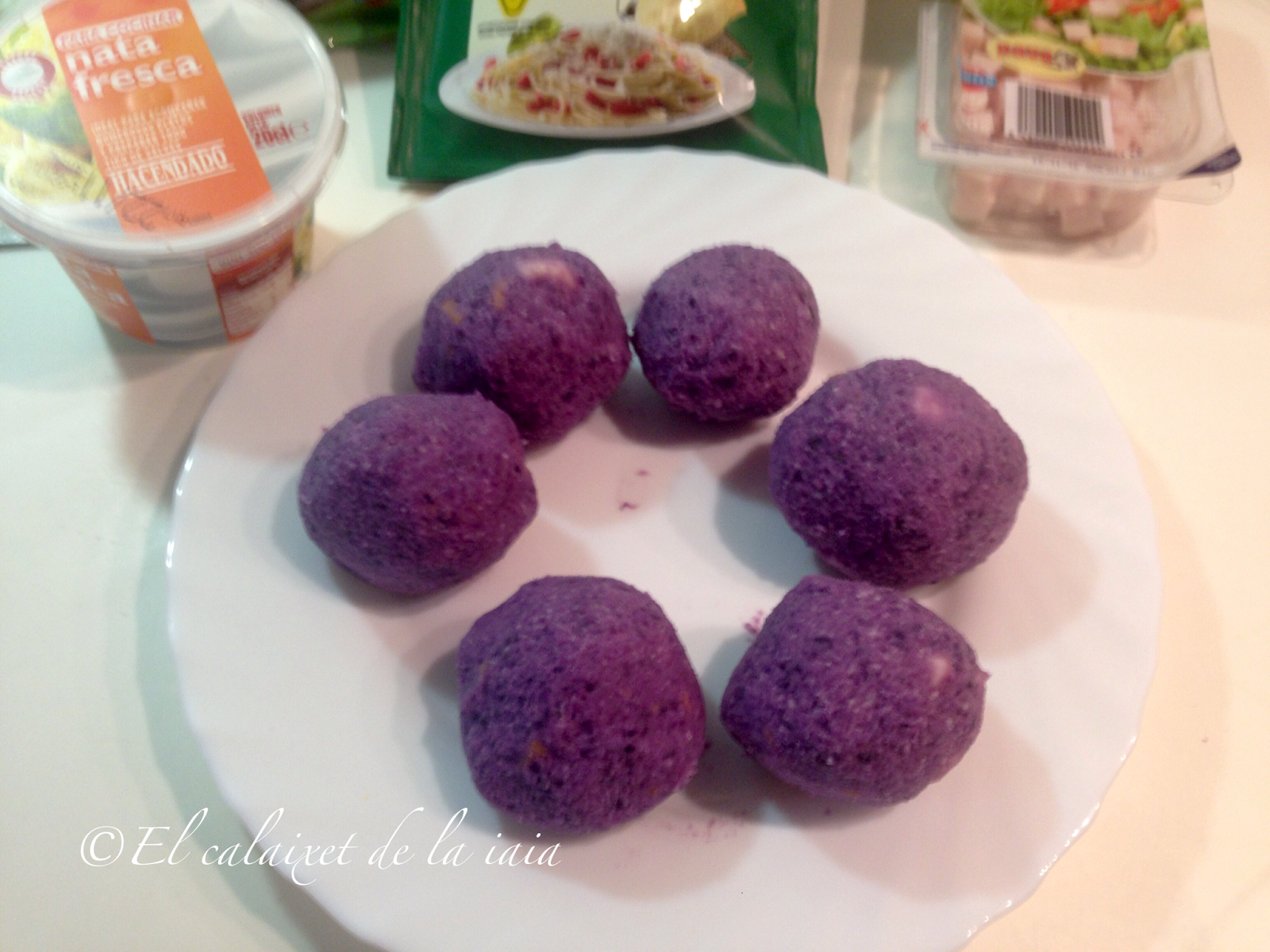 dentro de cada bola ponemos unos tacos de jamón de pavo