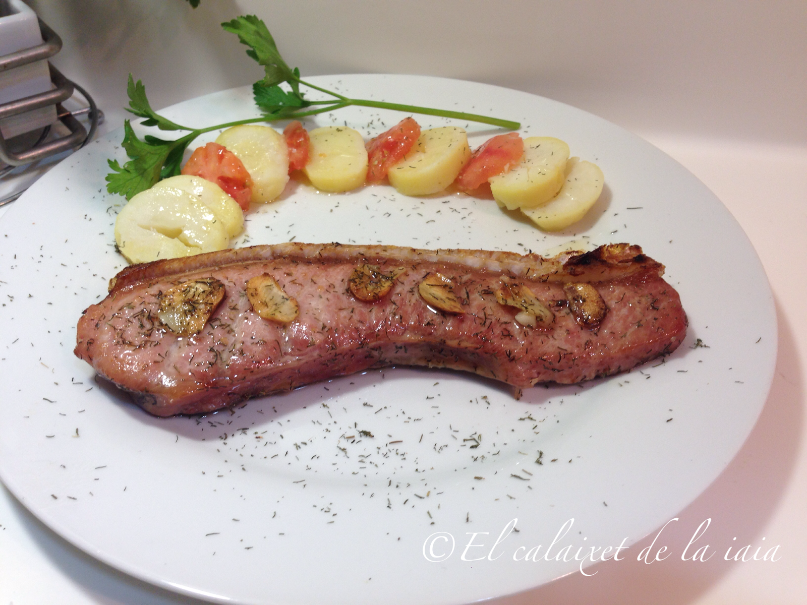 Nornalmente la suelo cocinar a la plancha, pero ésta vez tengo la vitro estropeada y la he preparado al horno. Ha quedado deliciosa.