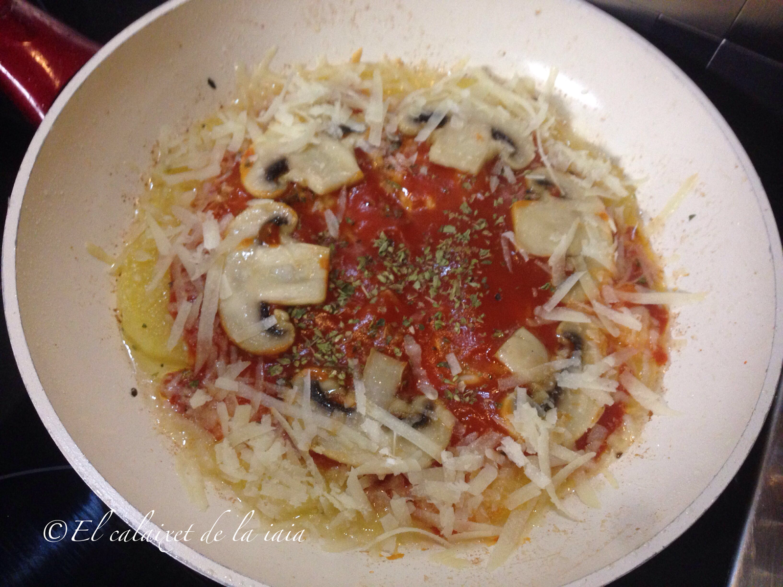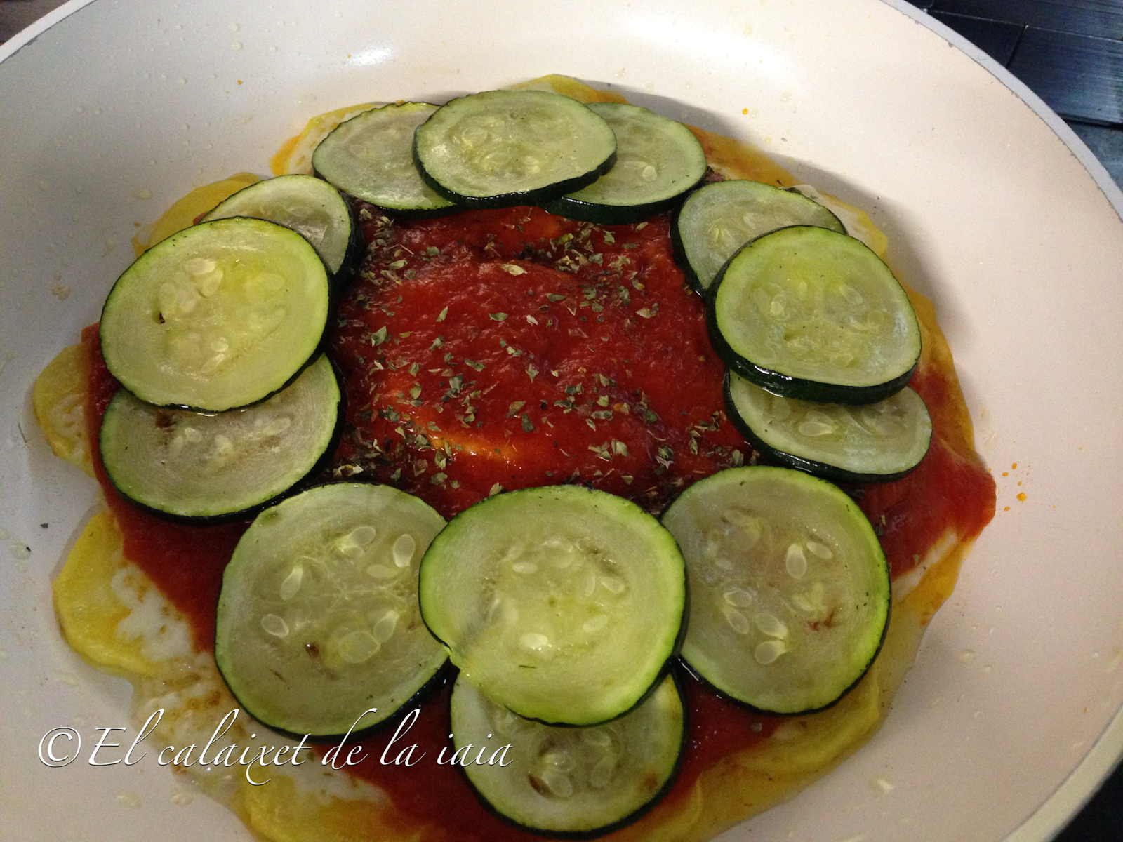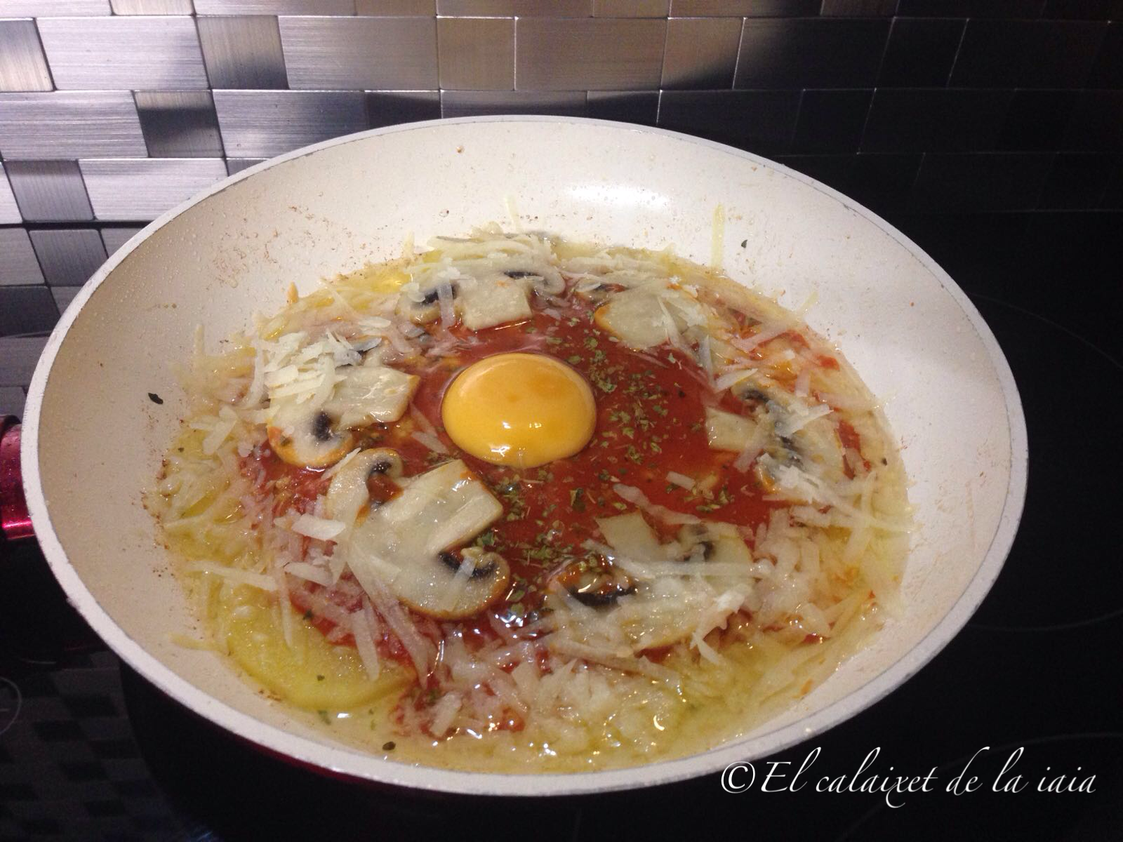 Se trata de una pizza pero que en realidad no es una pizza jajajaja, si, ya se, cada día estoy un poquito peor, porque… he preparado una no-pizza sin base ni masa de pan, ya que la base es de patatas, uinssssss que lío ¿no?