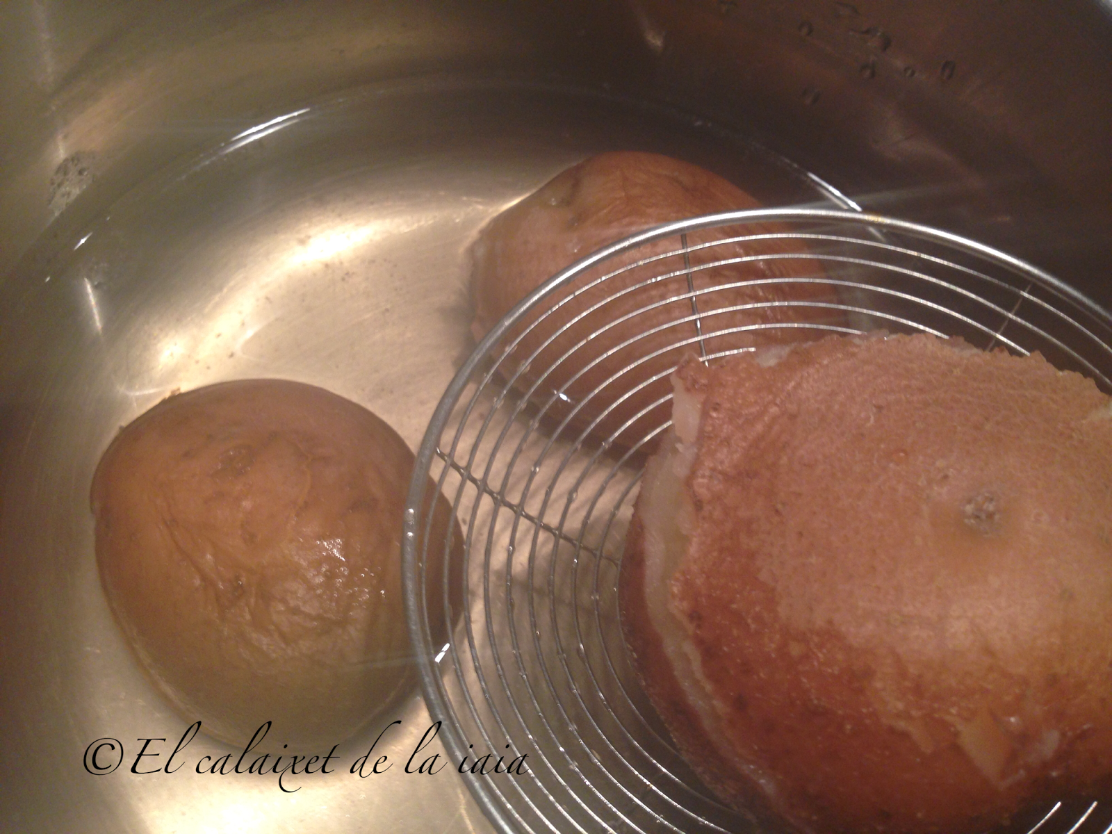 abundante agua durante unos 20 o 25 minutos, según la clase de patata, iremos pinchando hasta ver que estén cocidas