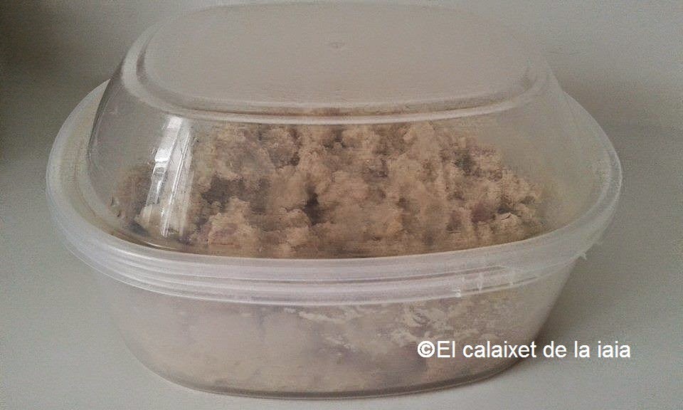 en éste caso, como son para la cena, meto la masa en un recipiente hermético y la dejo en el frigo. La podemos preparar perfectamente de un día para otro