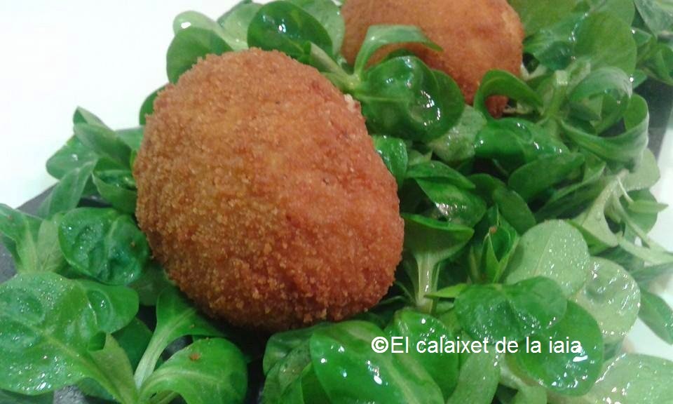 Pero como una imagen vale mas que mil palabras, voy con la receta que en casa, tienen mucha aceptación, porque están riquísimos, ésta vez los he servido en un lecho de ensalada de canónigos y tomates de pera.