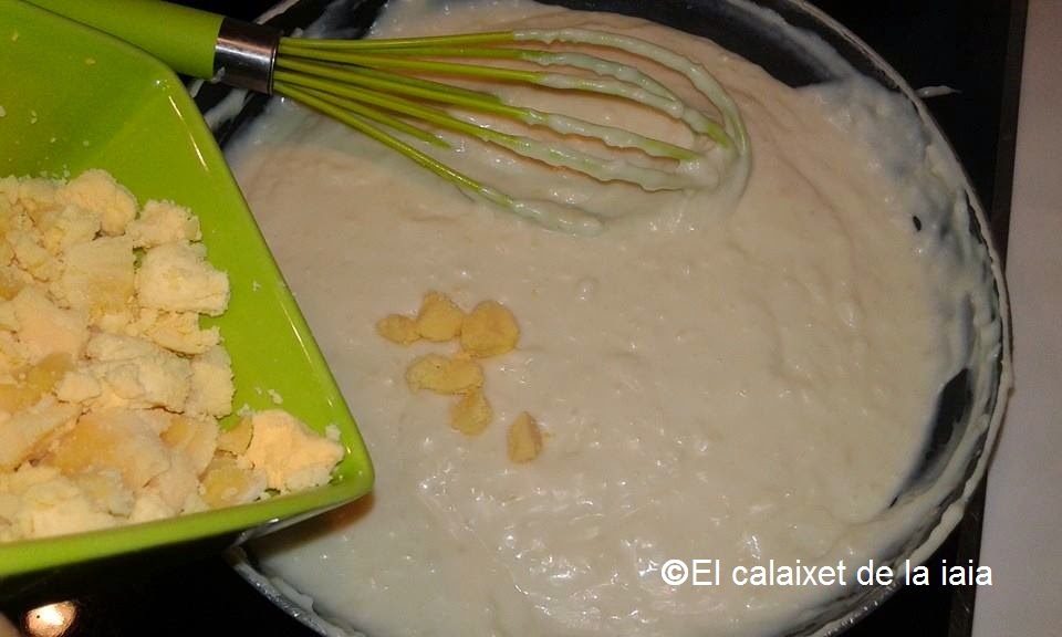 Añadimos poco a poco un vaso de leche tibia, sin dejar de remover hasta que se disuelva