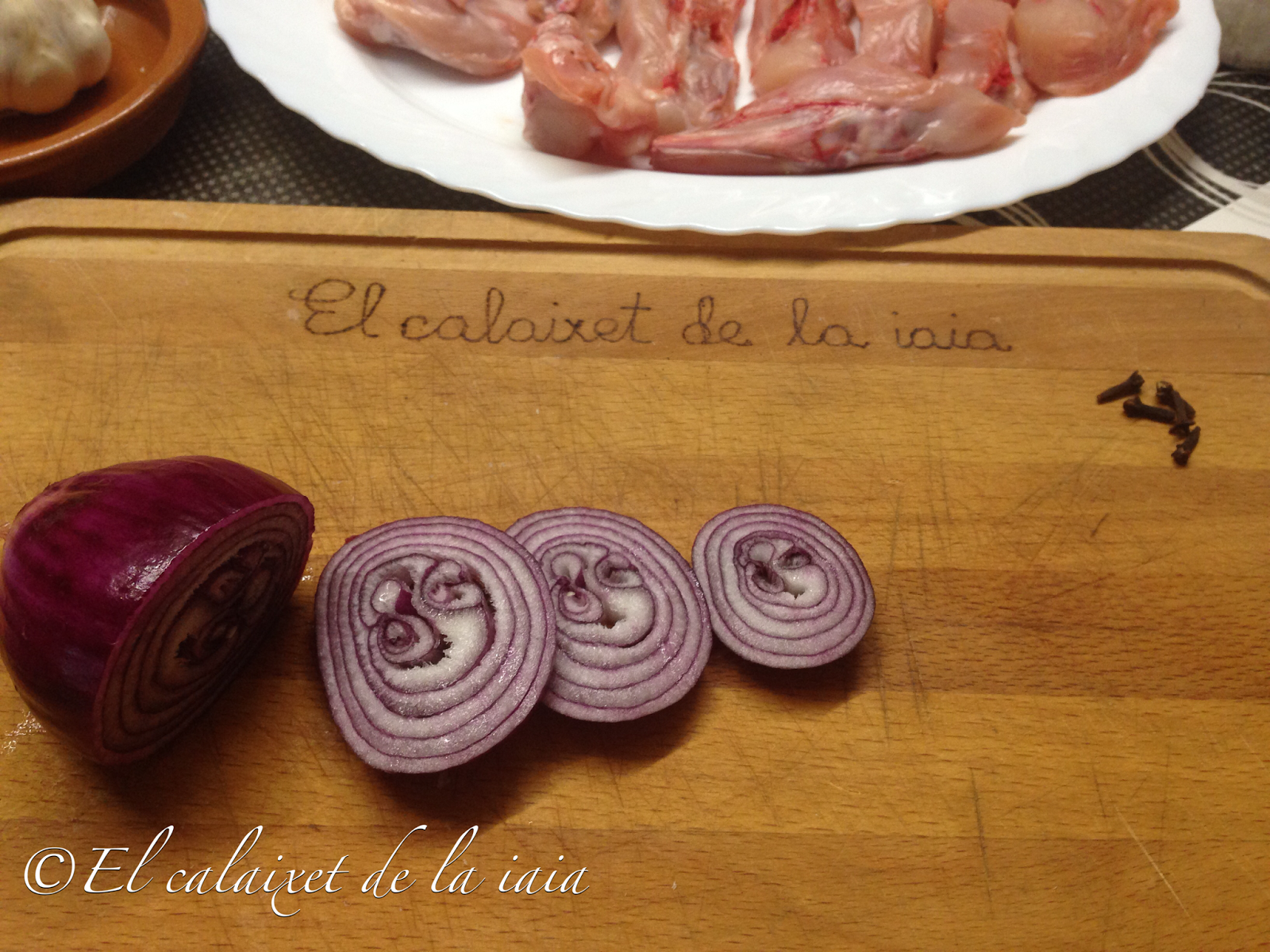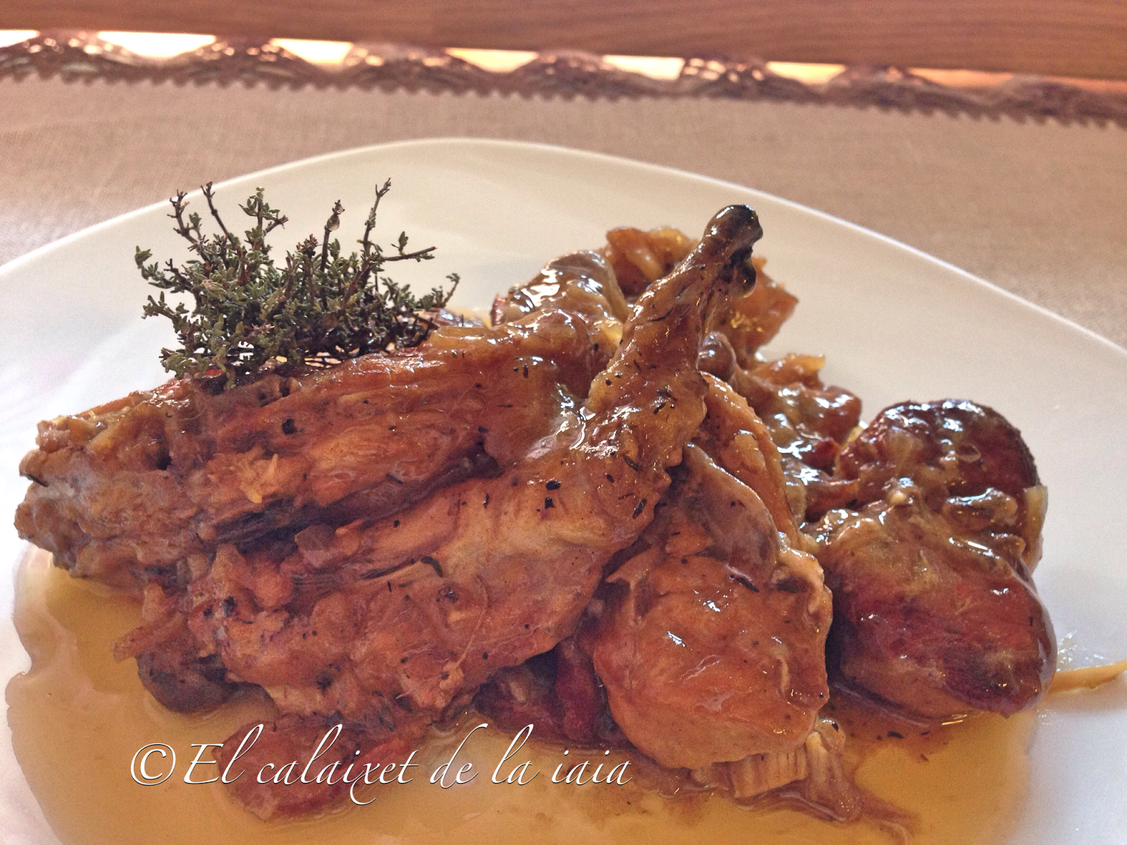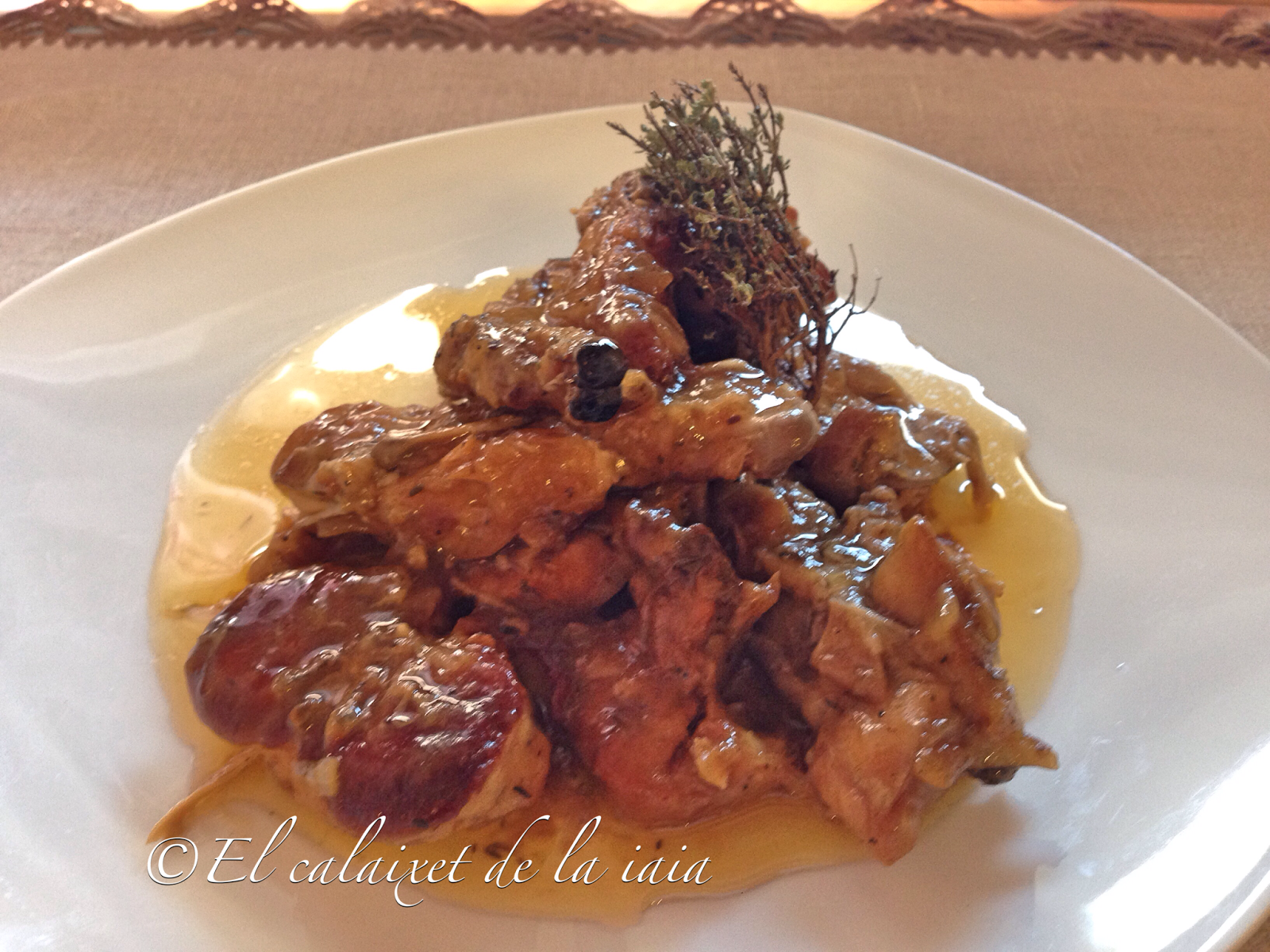 Pues nosotros hoy hemos tenido la suerte de comer un conejito recién alcanzado, aquí está ya guisadito y troceado, dispuesto para dar buena cuenta de él. Es un conejo criado de casa y ecológico, aunque mejor ni lo pienso, porque entonces, ni lo como, y me perdería un auténtico manjar como podréis comprobar