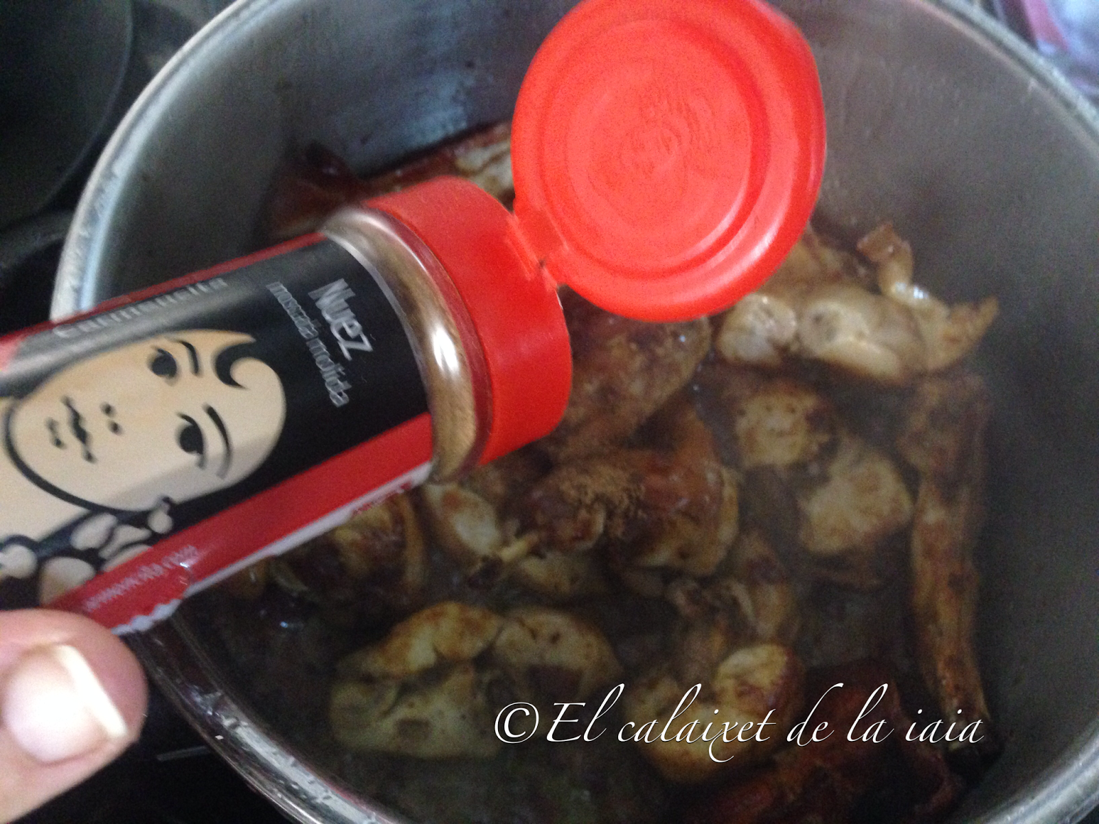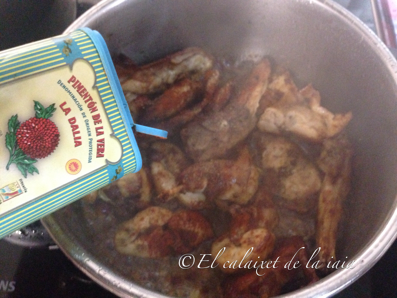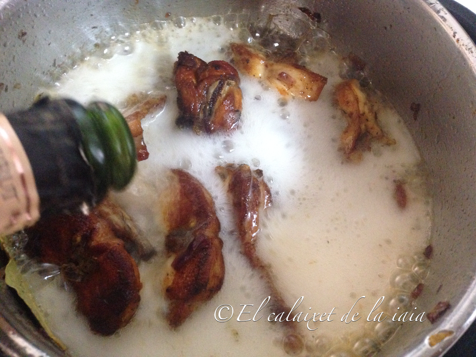 y rapidito rapidito, para que no se nos queme el pimentón añadimos el cava, si está fresquito y nos ponemos un culín de copa, para saborearlo un poco…no se va a notar nada ¿eh? 😉