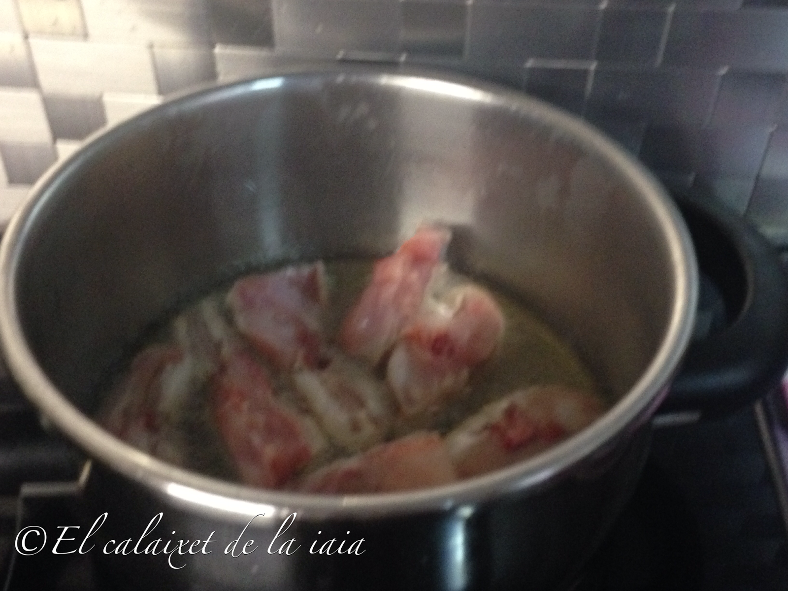 Hoy, he pensado cocinarlo al cava, porque con unos trocitos y los menudillos, y otros productos recién cogidos del huerto, voy a preparar un arroz caldoso para comer y el resto haré un guisadito para la cena.