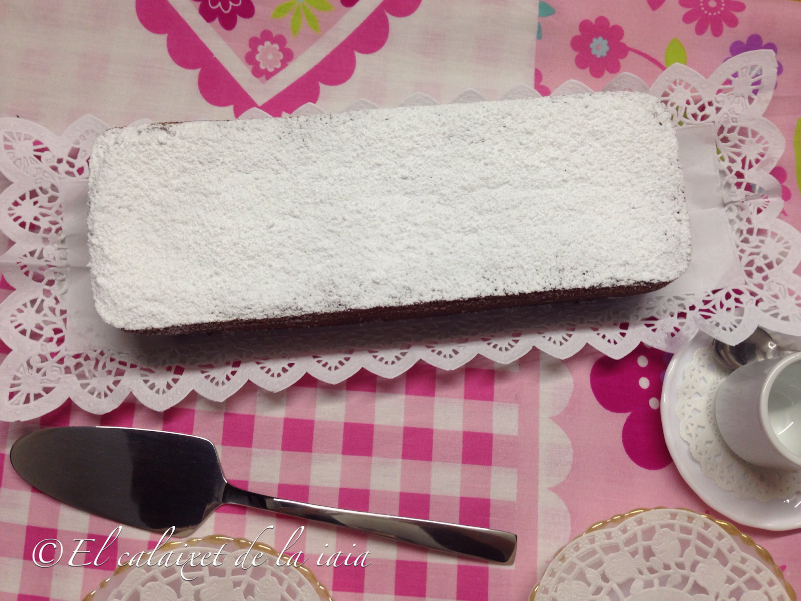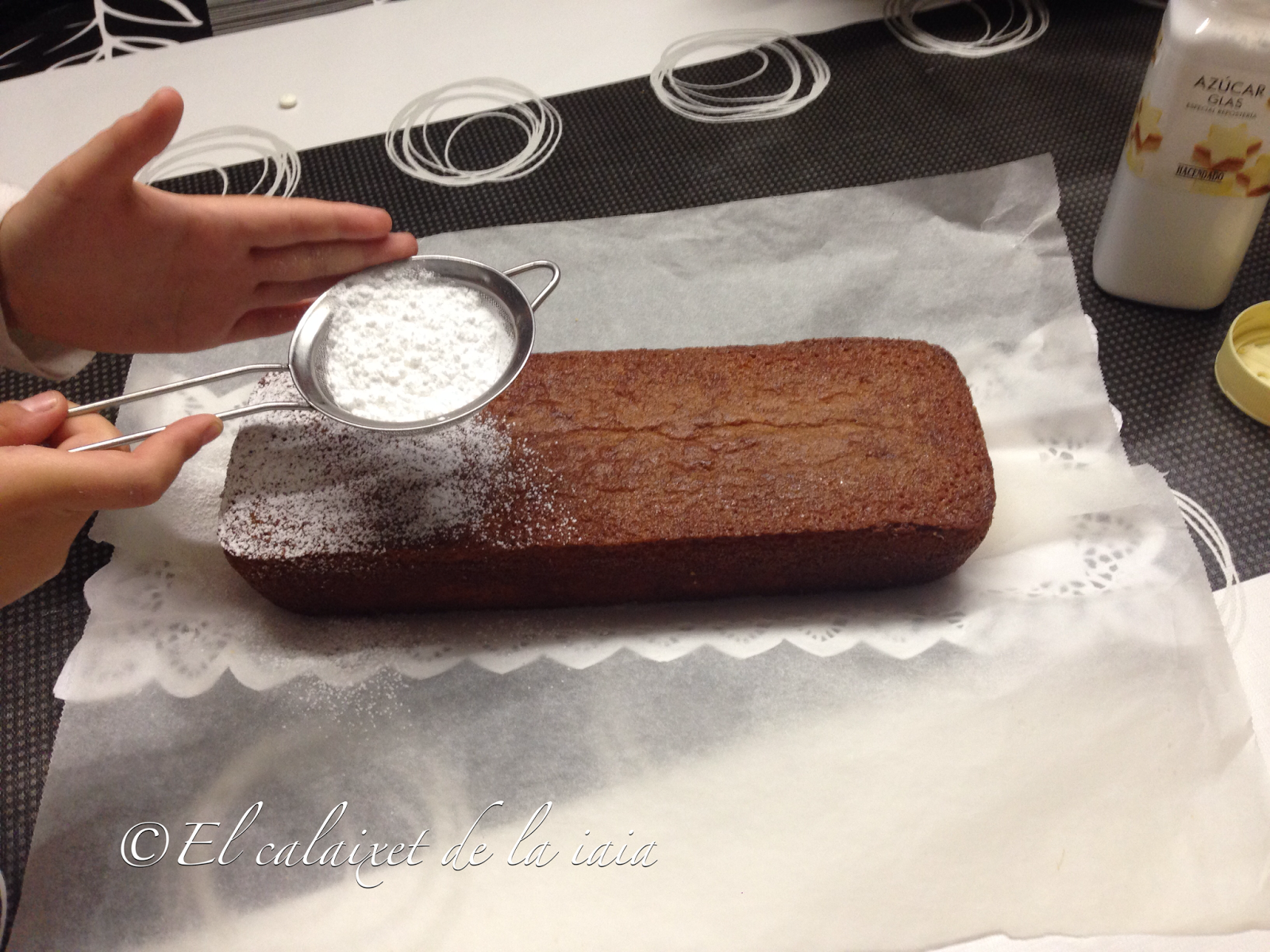 colocaremos el bizcocho encima y espolvoreamos con azúcar glass por ejemplo con ayuda de un colador,