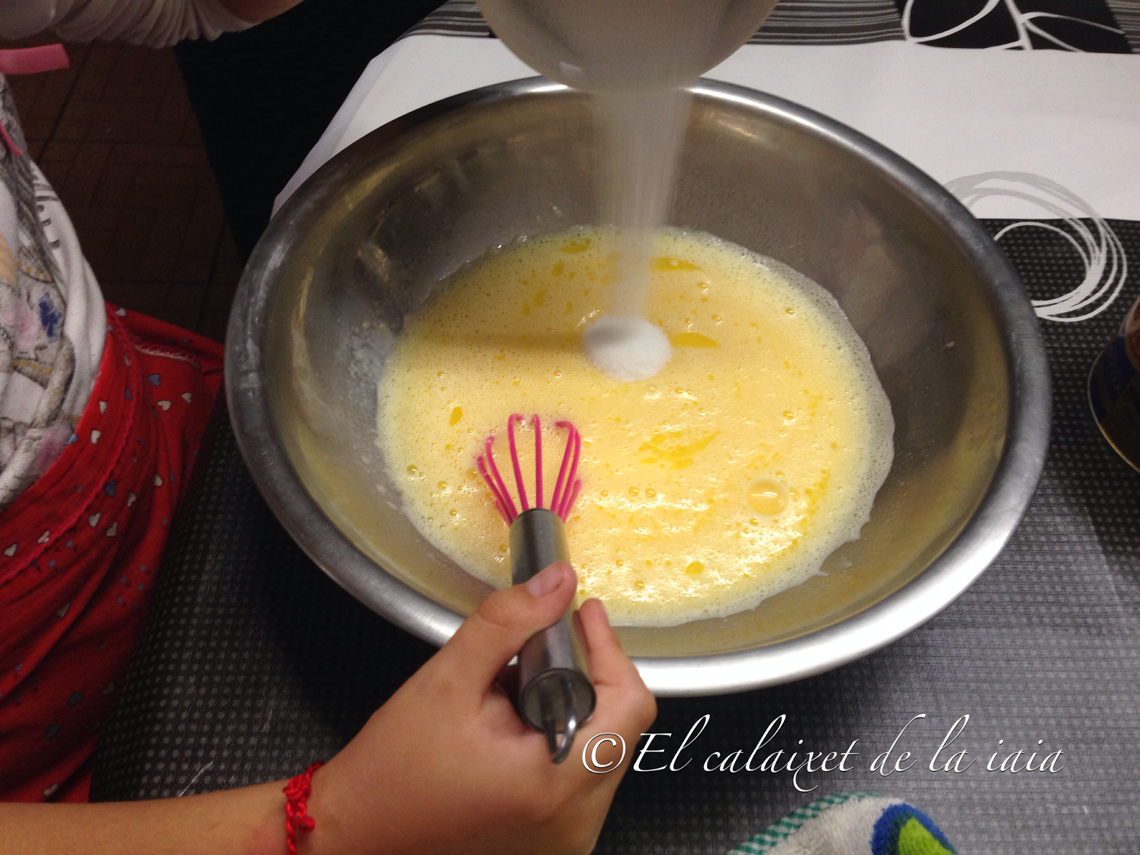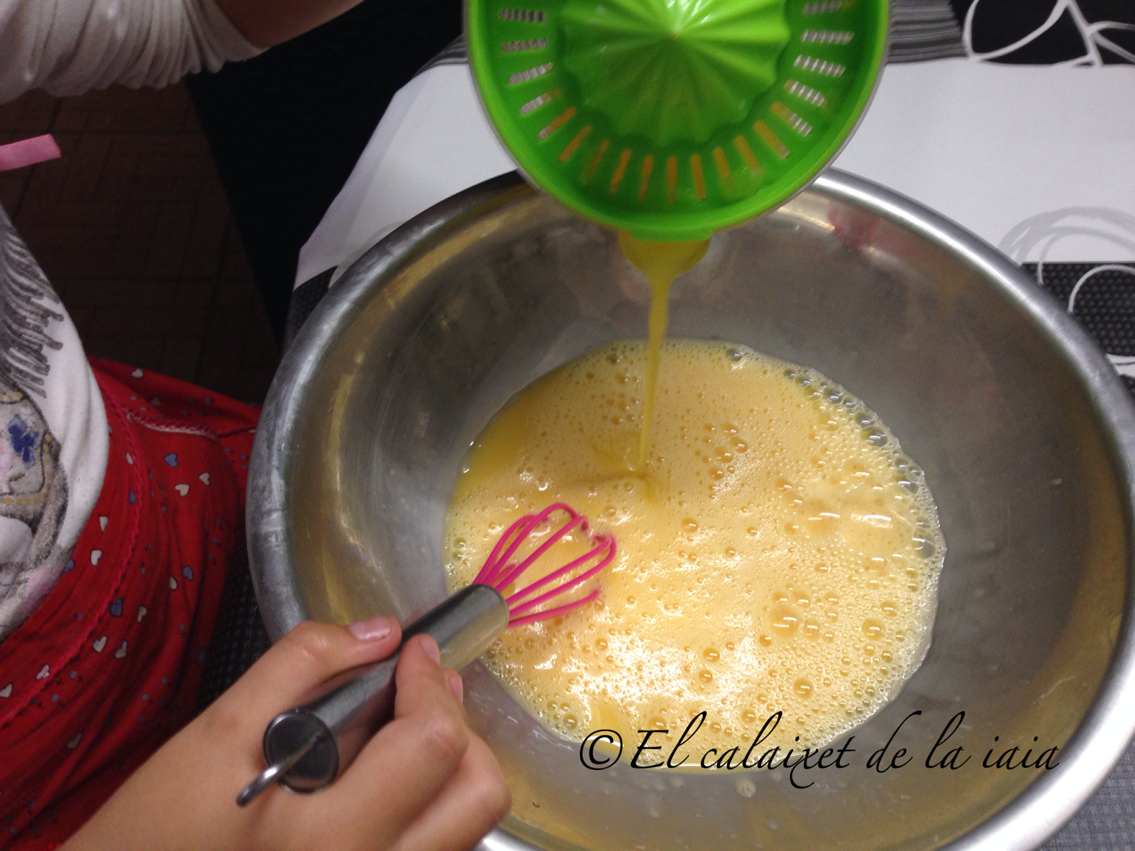 Mi nieta mayor salió ayer del cole y vino a casa, «Iaia, podríamos preparar para merendar mañana un bizcocho de sonrisa de melocotón….»y dicho y hecho, manos bien limpias y delantal atado, ya la tenía preparada. Le encanta «cacharrear» conmigo, y a mí me cae la baba claro, encima ahora su hermanita también colabora así que ¿que os voy a decir? más feliz que una perdiz. Con ellas se olvidan todos los males, y mas cocinando sonrisas, entre sonrisas jajajaja.