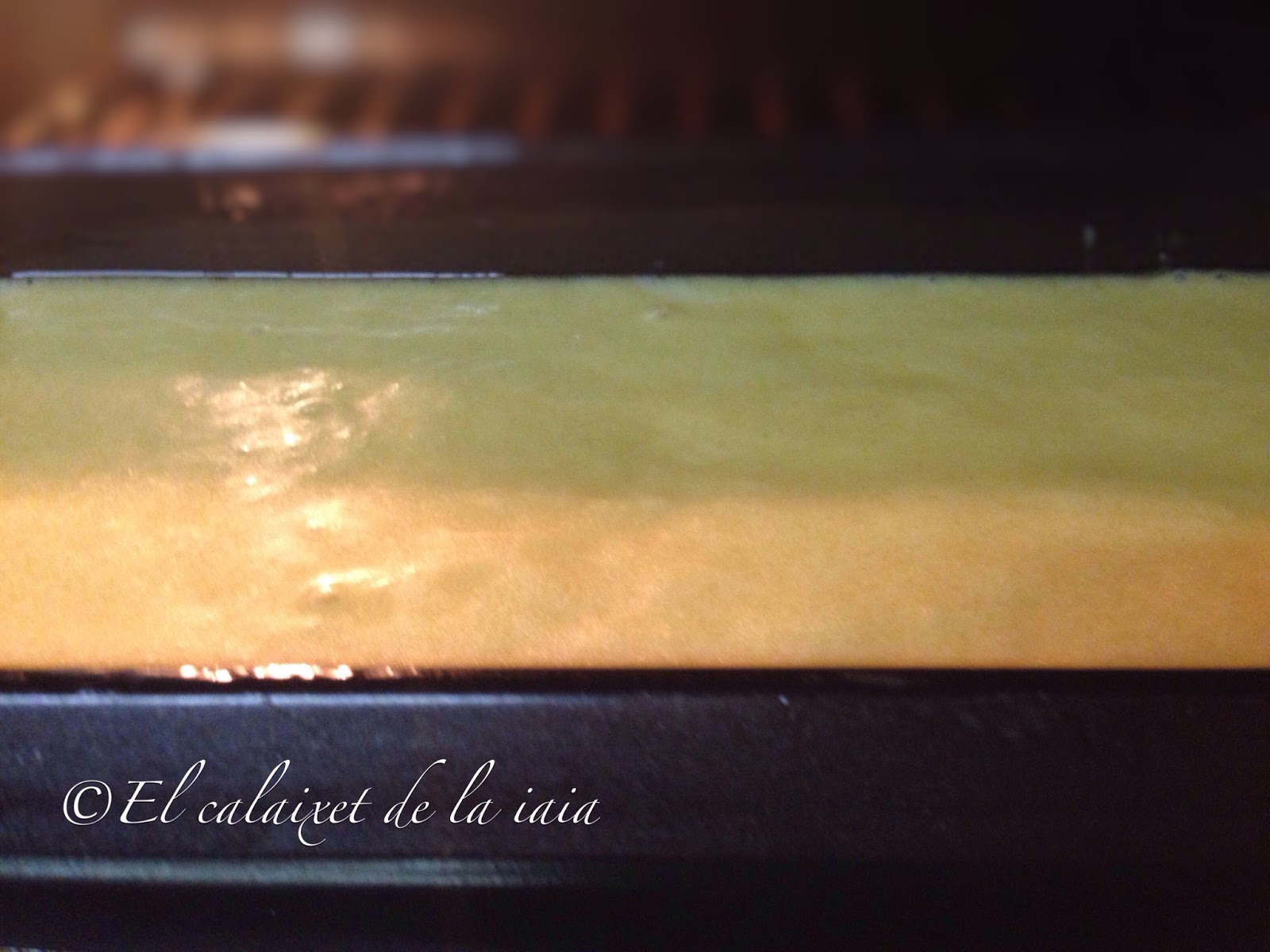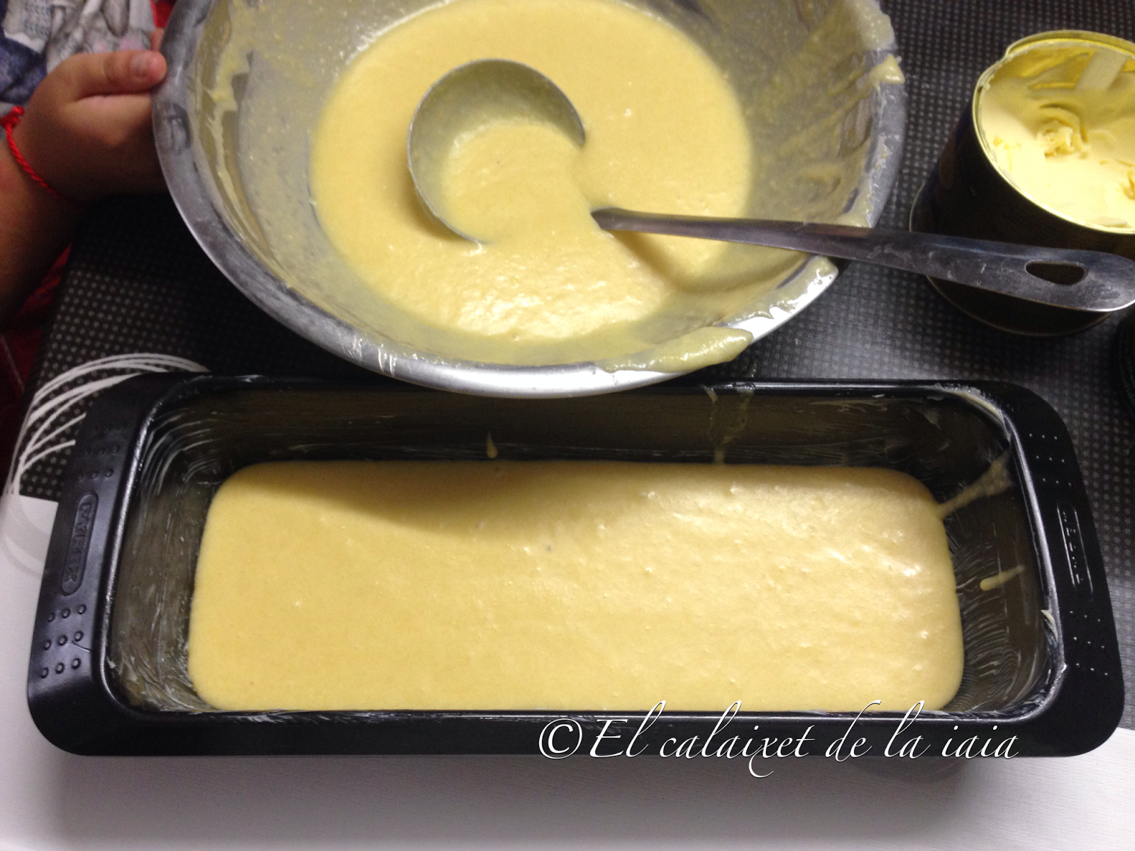 en el molde que teníamos ya preparado, volcamos la mitad de la masa