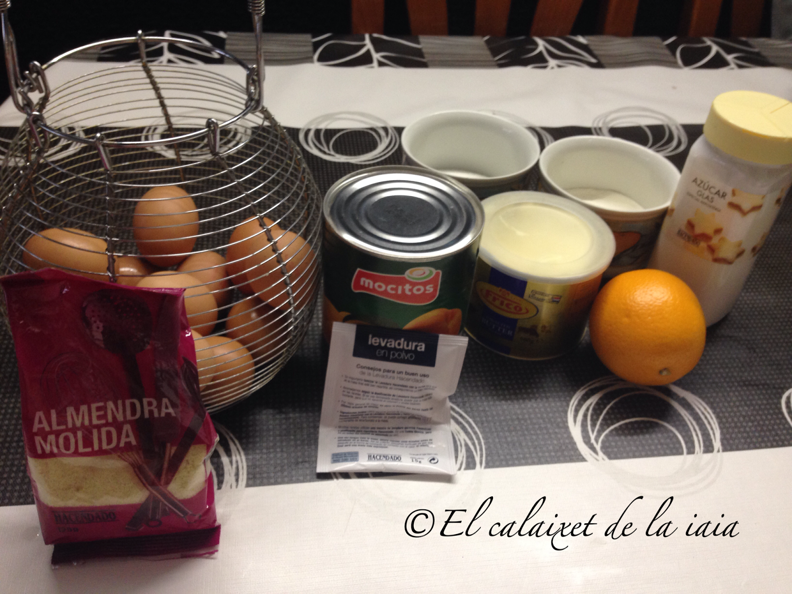 Voy a preparar un bizcocho, suave, jugoso y frutal que está riquísimo y que en su origen no fue de melocotón, si no de pera, y que podemos hacer con cualquier fruta en almíbar.