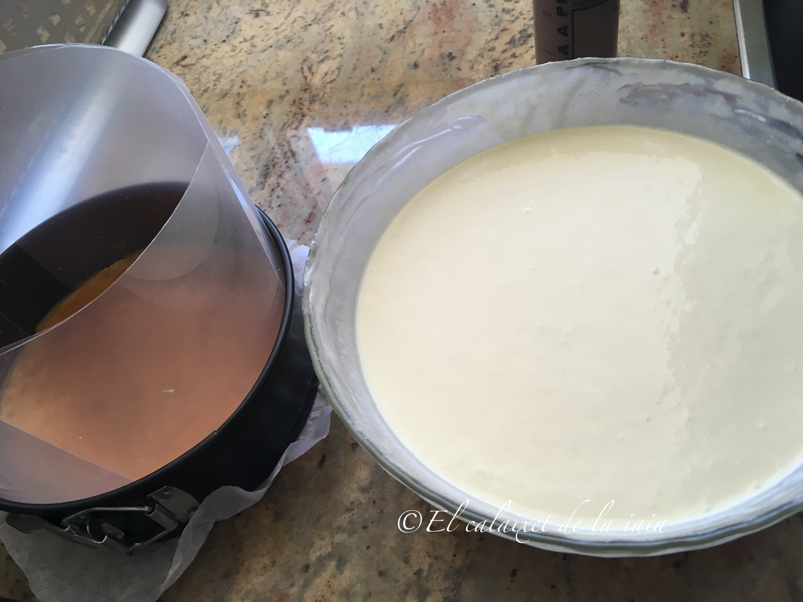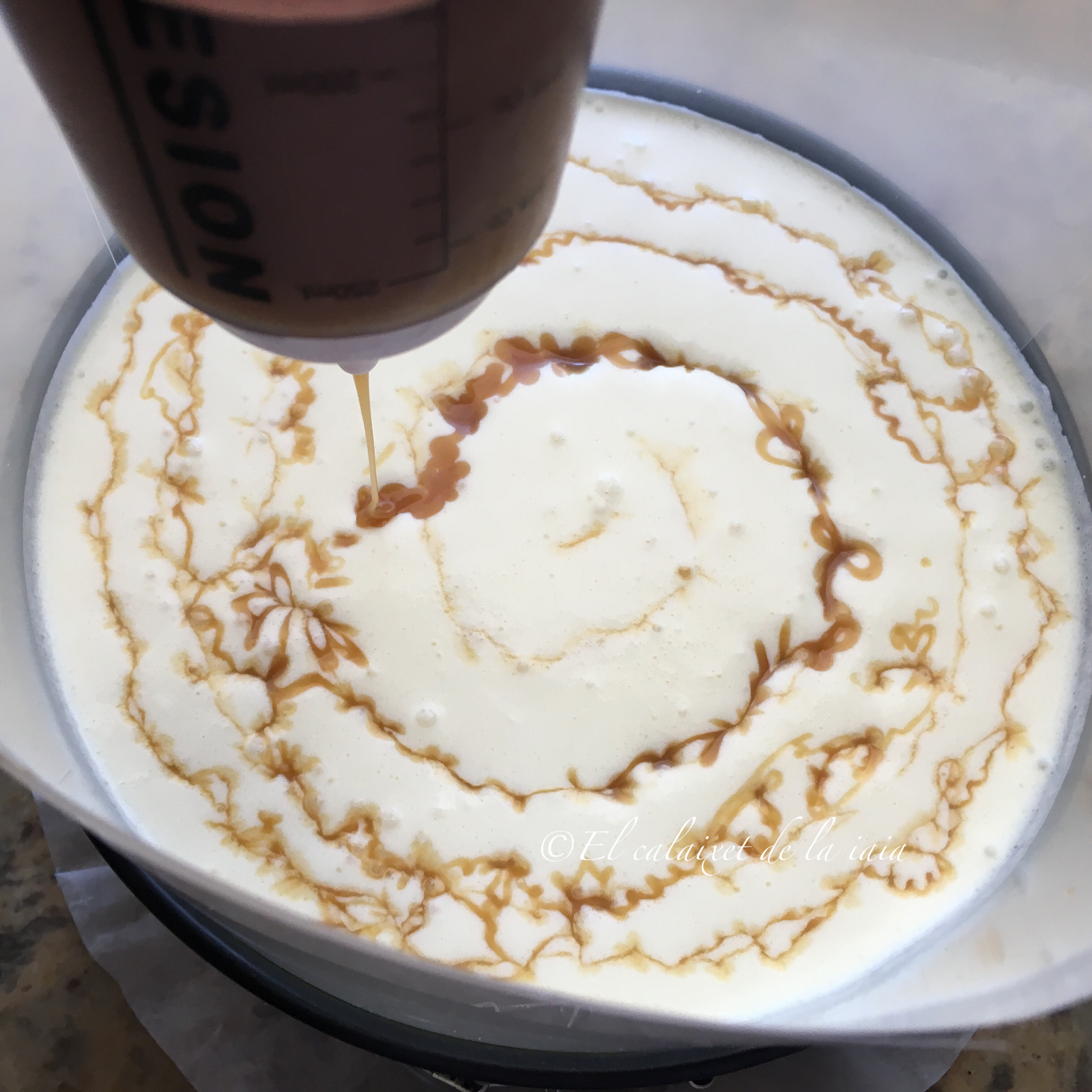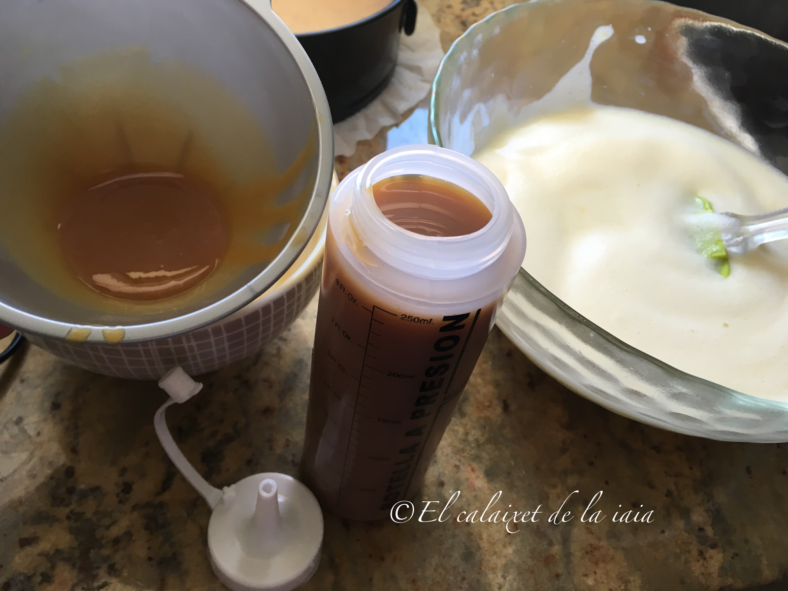 y cubriremos la base de bizcocho con una capa decapa de chocolate al caramelo