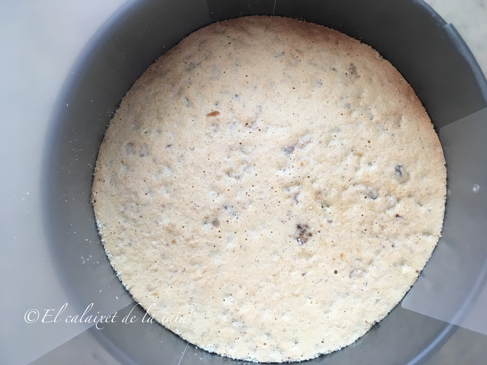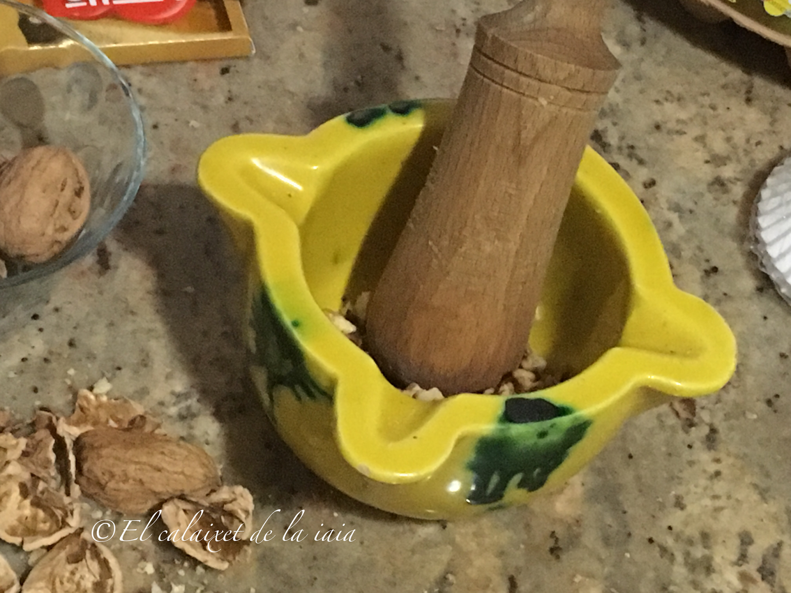 Este tipo de tartas y con mi microminiiiiii cocina, (en la que no cabe mas de una persona y apenas tengo banco para trabajar ni para nada), prefiero hacerla en distintas fases, aparte de que el bizcocho es bueno que se repose al ser tan fino, así que un día preparo el bizcocho, las flores y los adornos y al siguiente el resto de la tarta. Comenzaremos abriendo y picando, (no mucho) unas cinco nueces para un molde de 19cm.