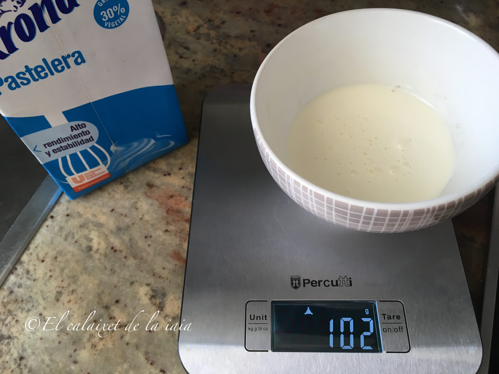 Ahora llega el momento de montar la nata, sin azúcar. Para ello, que esté muy fría de la nevera