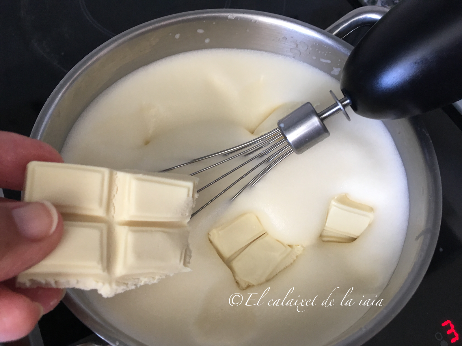 y mezclamos en la nata caliente hasta que esté totalmente integrado y dejamos reposar