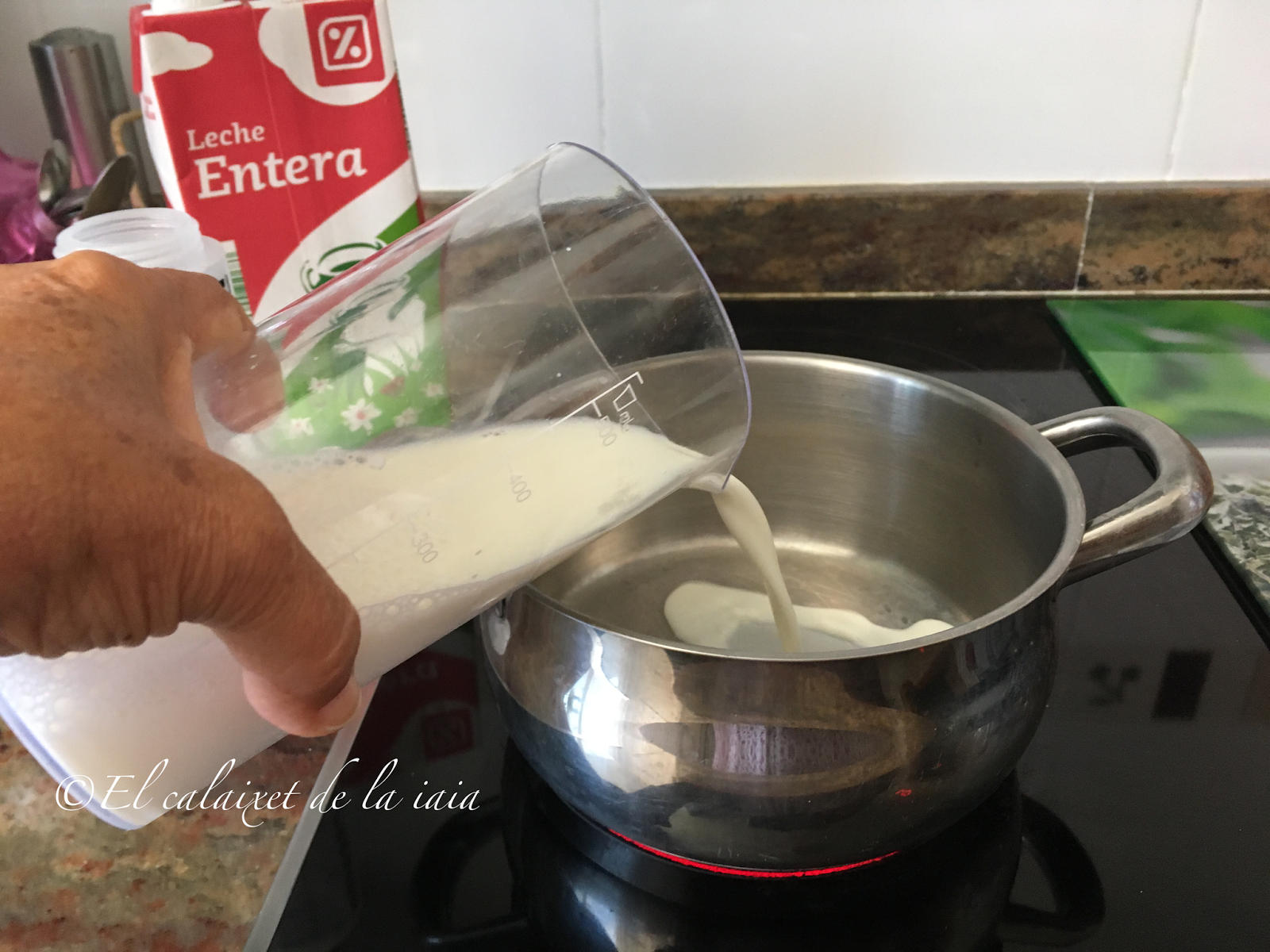 Ponemos a calentar 100ml de leche entera, teniendo en cuenta que no debe llegar a hervir