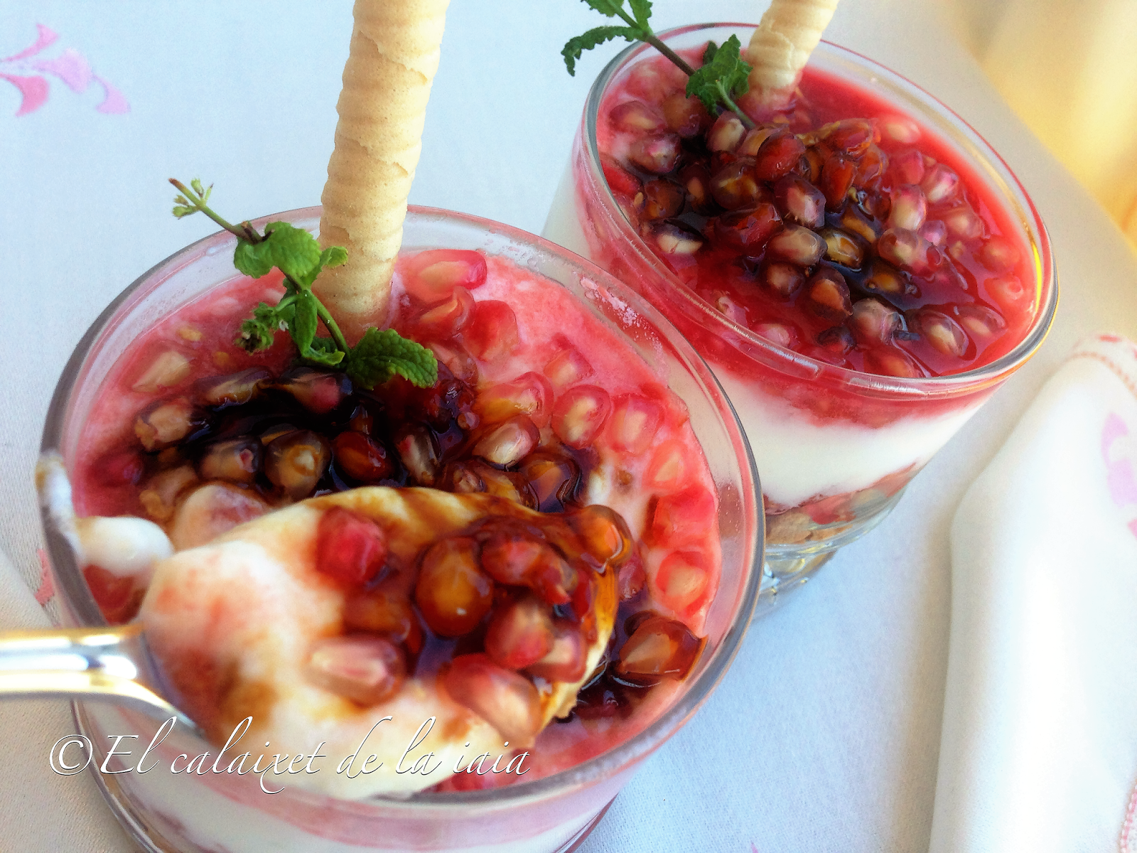y encima del mismo, otra capa de granada, ésta vez, con el jugo que haya soltado