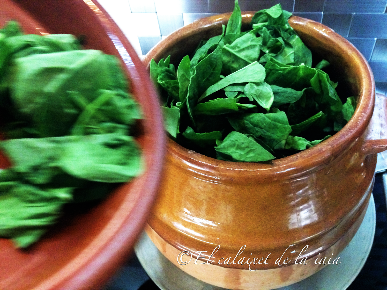 «Refrany; Els espinacs menja’ls a sacs». Las espinacas, cómelas a sacos.