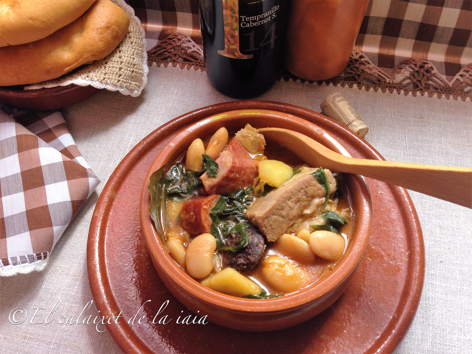 Hoy he preparado una «Olla muntanyesa amb espinacs», se trata de un plato similar al cocido montañés, plato típico de Cantabria, pero con variantes, que en la montaña valenciana, también hace mucho frío y se comía y se come, de forma sana y contundente 😉