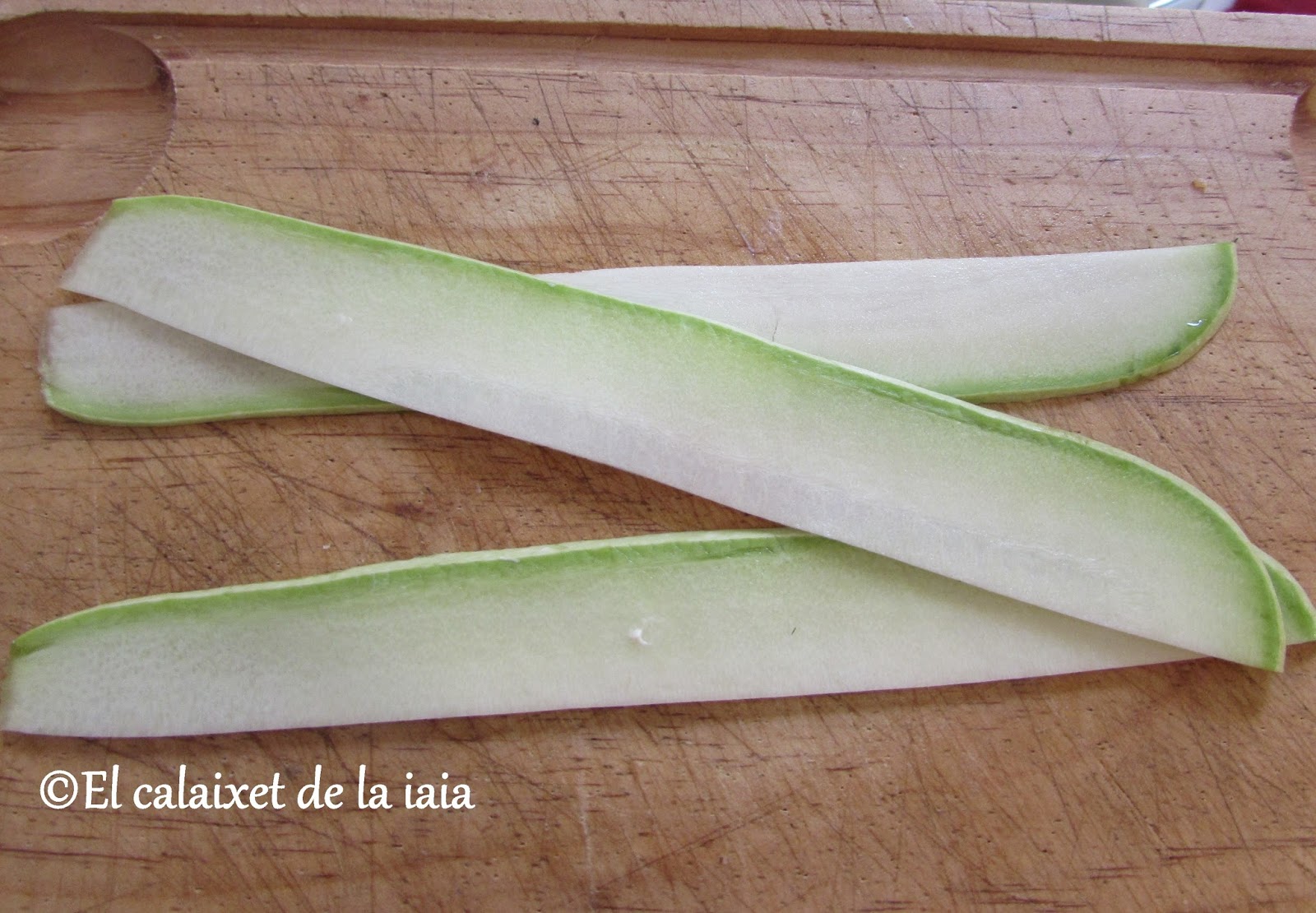 Para cortar las verduras lo podremos hacer con un cuchillo afilado, con un pelapatatas o con una mandolina. Esto último es lo ideal, puesto que necesitamos las cortadas muy finas y con la mandolina nos saldrán de un tamaño igual, pero no es imprescindible.