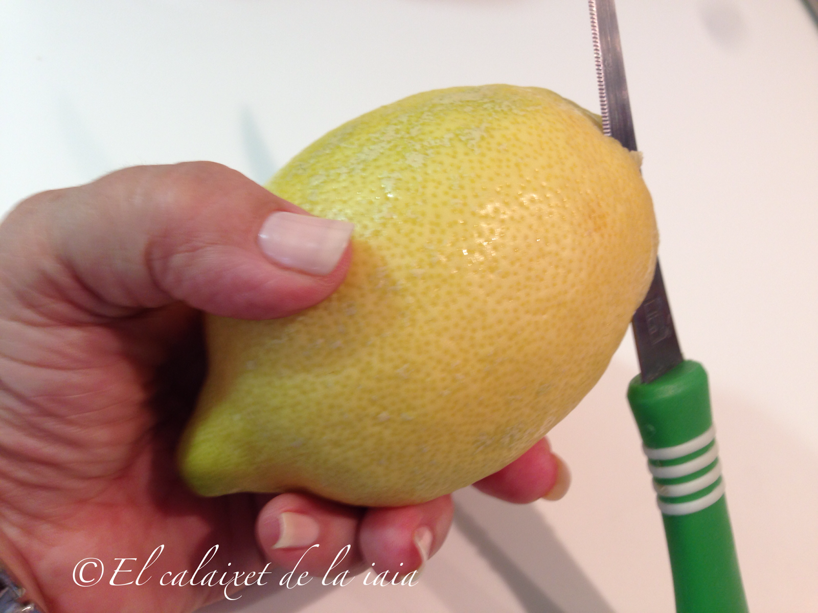 Lavamos un limón y cortamos la piel de medio, procurando no coger la parte blanca porque amarga