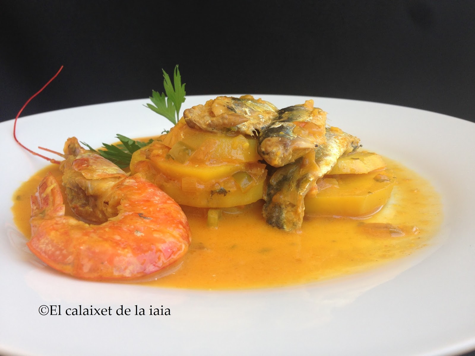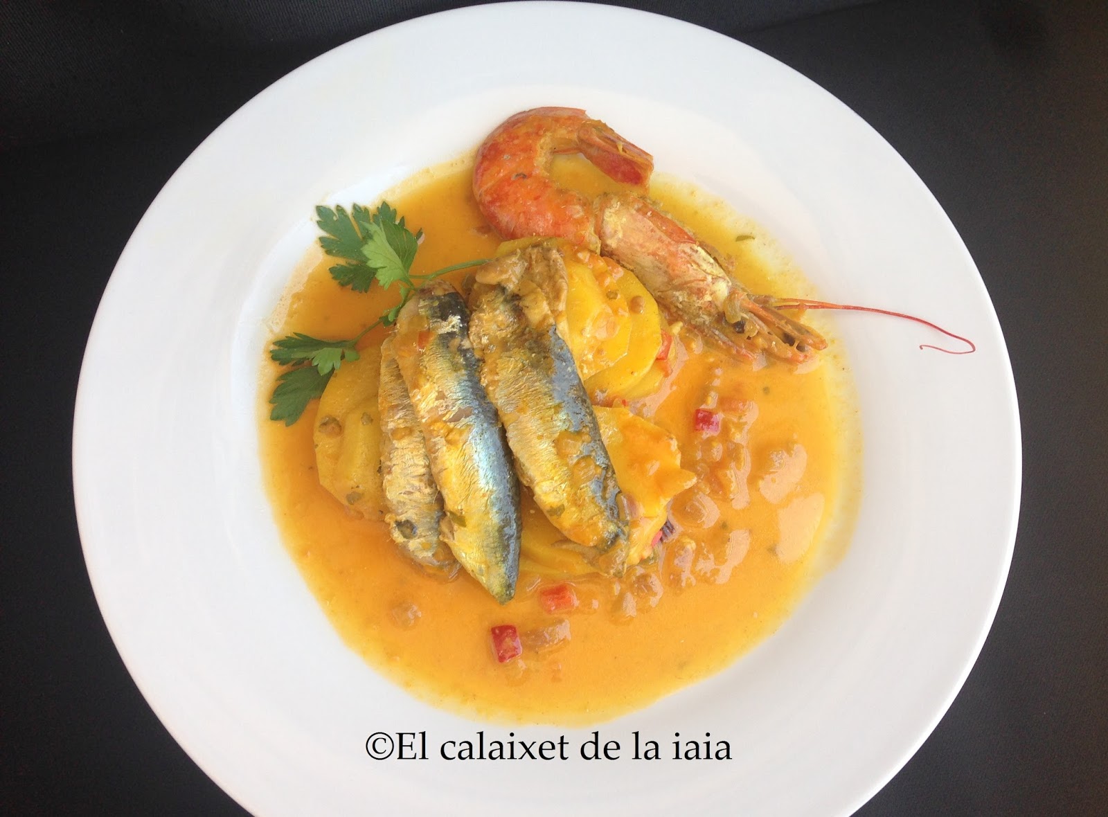 Pues éste año, las sardinas están preciosas y riquísimas. Ésta mañana en el mercado, daba gusto verlas tan frescas y brillantes, así que he comprado unas poquitas para hacerlas en un guisadito con patatas, que resulta un plato fácil y rico rico y es un plato marinero muy tradicional y antiguo de mi Cabanyal, ya que se trata de un plato de pobres, de marineros y pescadores al que yo me permito la licencia de añadir un langostino 😉